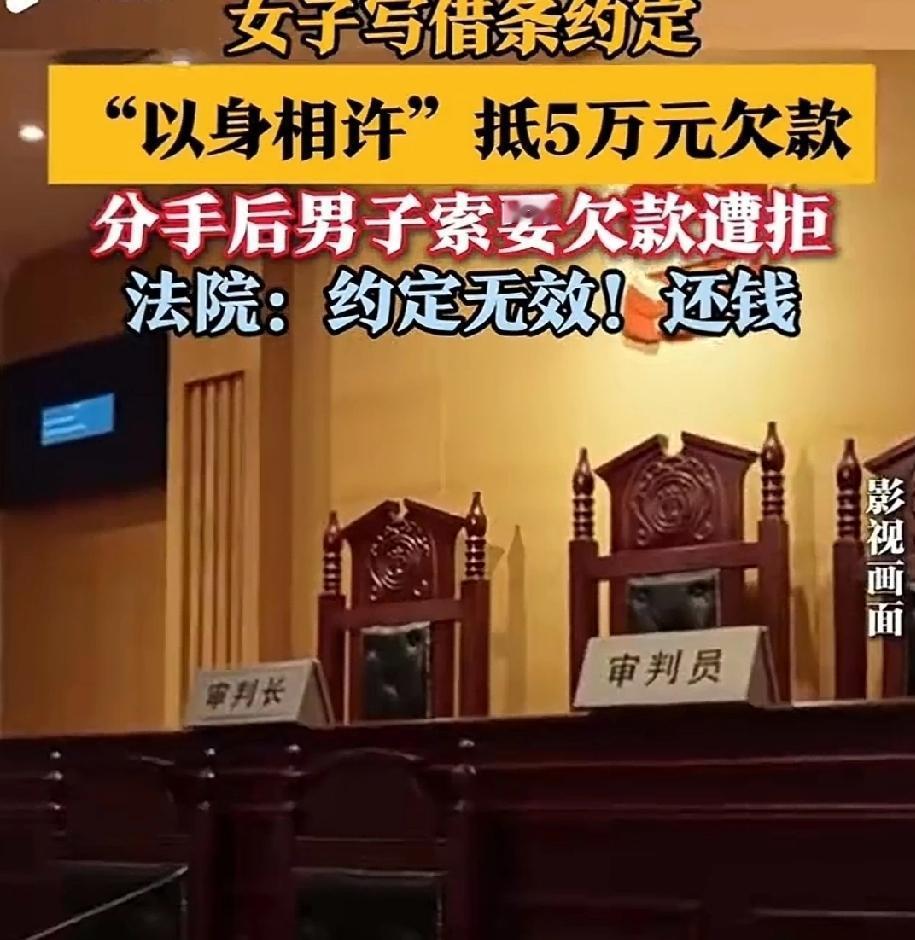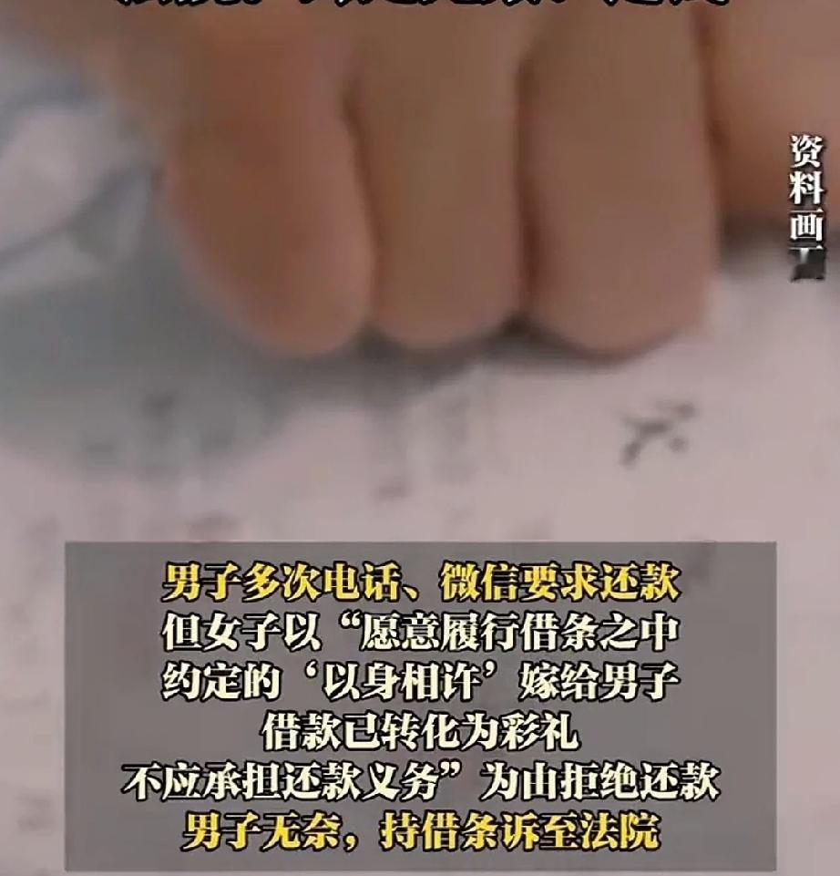 湖南益阳。男子罗某通过相亲平台,认识了女子贾某。进一步发展,确定了恋爱关系。俩人的关系一天比一天好起来,成为了情侣。 贾某在热恋中向罗某借5万块钱,她笑着说,就当给我的彩礼钱,好吗?罗某同意了,但是要她写下借条。 贾某在借条写下,如果没有归还,就以身相许嫁给对方。结婚后就以此款作为彩礼,不用归还。 过了几个月,俩人闹起了矛盾。罗某多次打电话、发微信要贾某还钱。贾某回称,愿意履行借条的承诺“以身相许”,嫁给对方。表示借款已转换成彩礼。拒绝还钱。罗某要不到钱,诉至法院,要求追回自己的钱。 1月23日,益阳赫山区人民法院作出判决,“以身相许”违背公序良俗。贾某应归还罗某的5万块钱。双方均没上诉,判决生效。 这对情侣就此各奔东西。 女子要以身相许抵前男友欠款 情侣