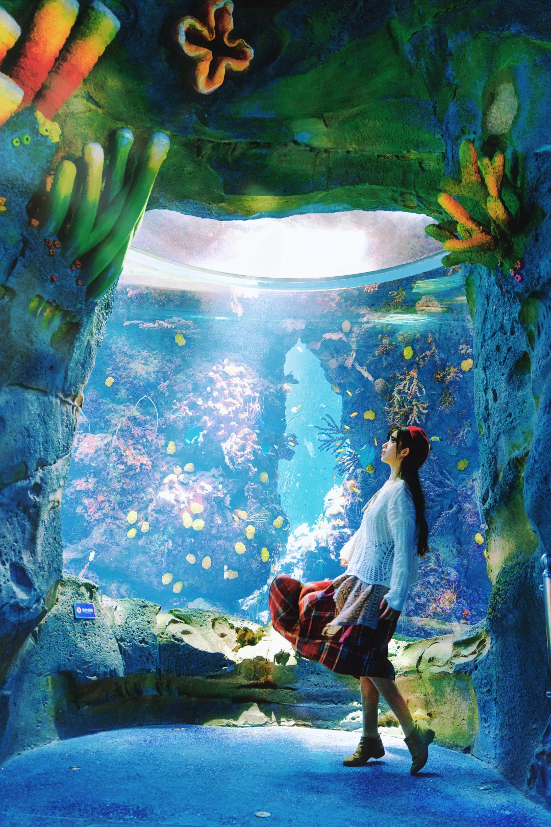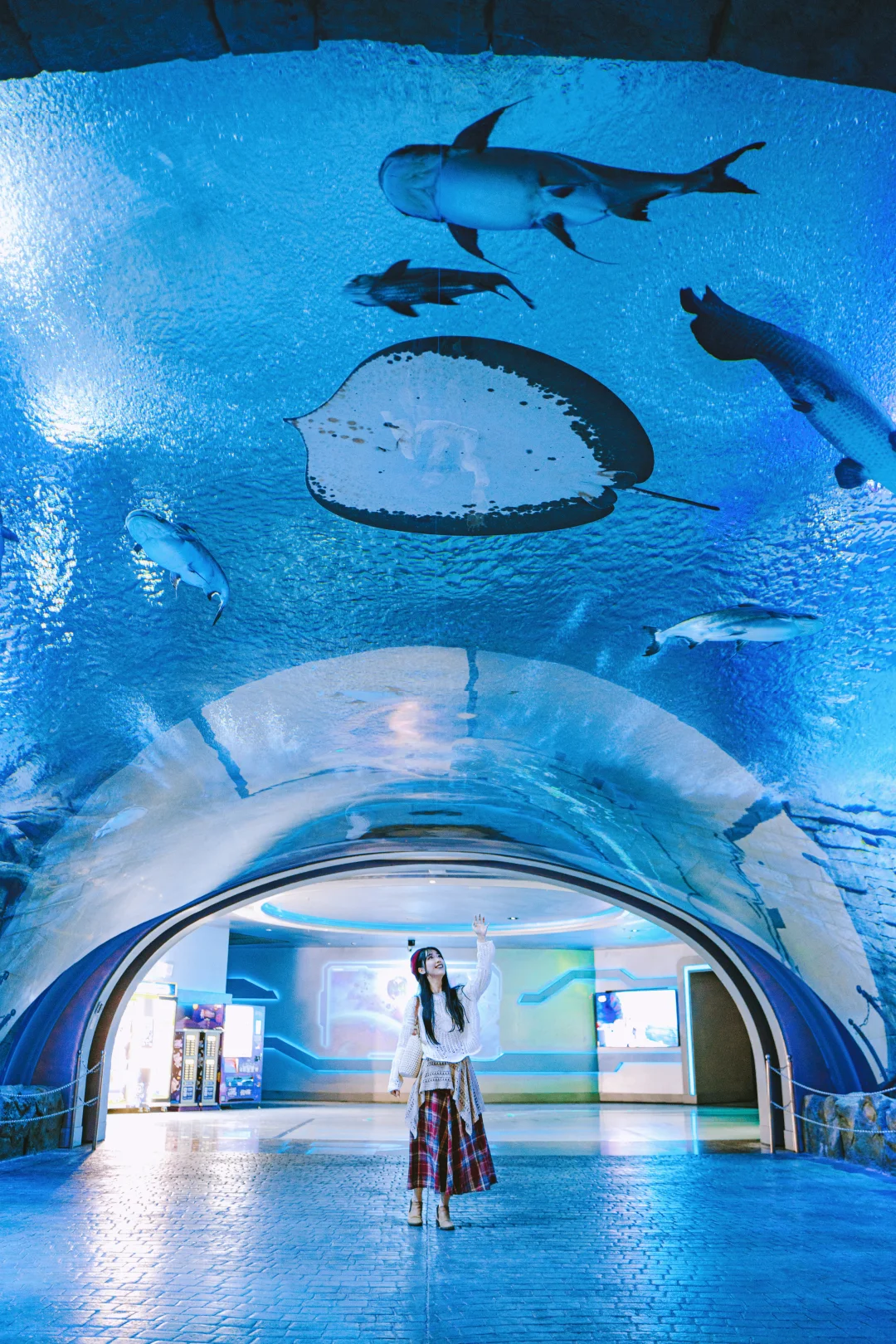 ✅ 亚细亚星球隧道:巨大的鱼群从头顶慢悠悠游过,仿佛穿越深海秘境,站在中间拍背影真的美爆