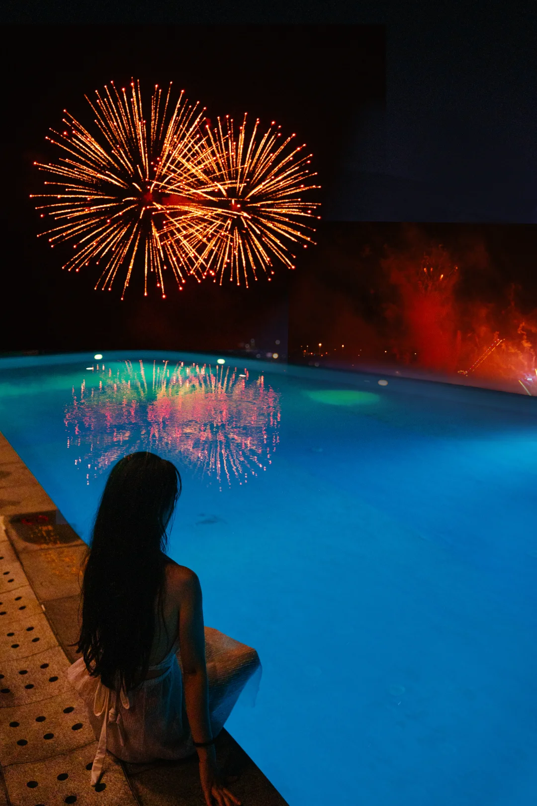 🌟不得不说,前一晚住飞船酒店真的选对了!在无边泳池看着烟花秀升空,连气泡都裹着星光✨ 新年期间还有限定【鲲鹏鱼灯烟花无人机表演】,当 “鲲化鹏” 的光影划破夜空,巨大的翅膀携着星芒展开的瞬间,许下新年愿望,愿新岁如鲲鹏般,带着热爱与期许扶摇而上