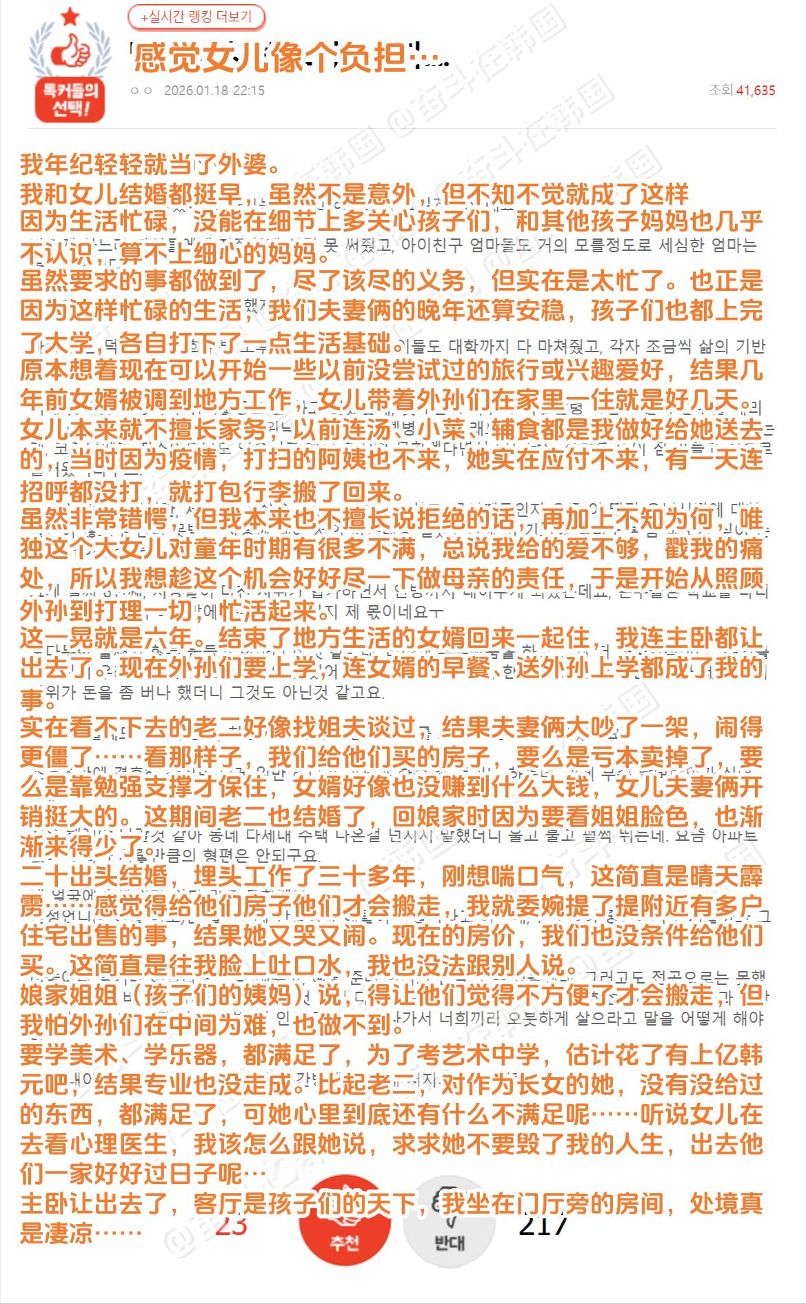 韩网热帖:感觉女儿像个负担...海外新鲜事热点现场