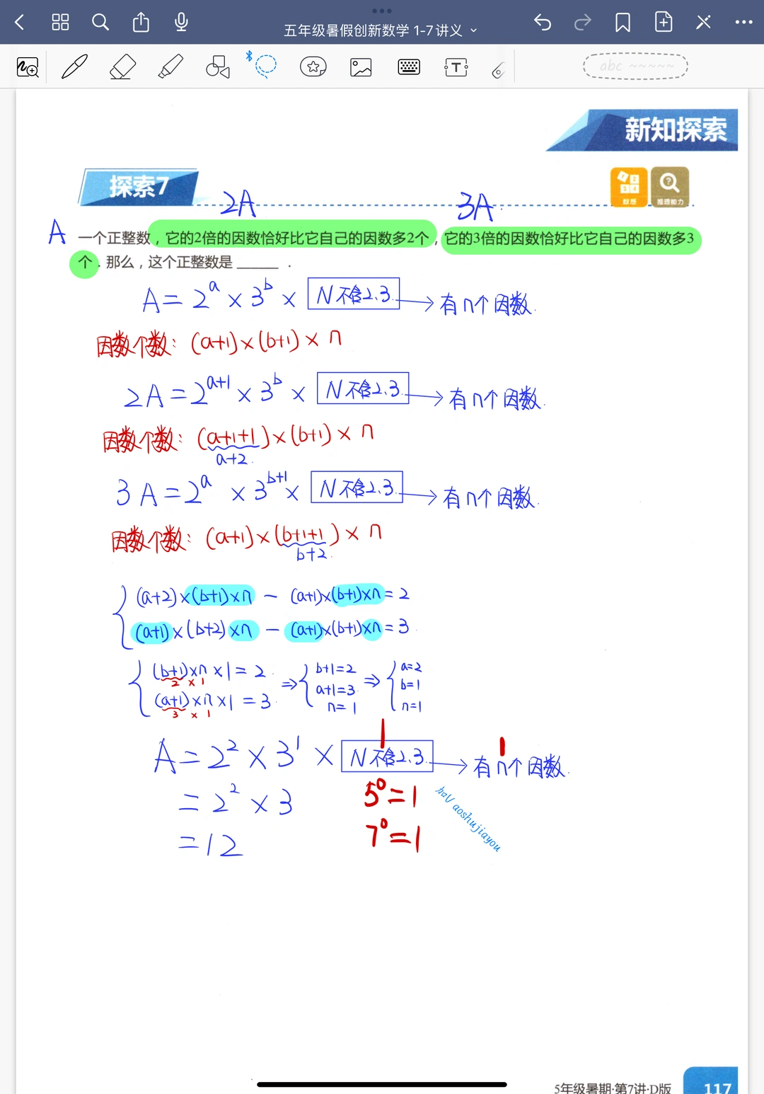 《因数个数定理》五年级暑假奥数创新班