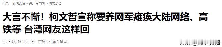 柯文哲曾言:大陆若胆敢对台湾出手,我随随便便就能让大陆瘫痪? 台海局势持续紧绷,当许多人还在为两岸的未来忧心忡忡时,台湾政坛的一些声音却显得格外刺耳。 其中,民众党主席柯文哲的一番话,曾让不少人瞠目结舌。他声称,大陆如果敢对台湾动武,他有能力“随随便便让大陆瘫痪”。 而所谓的“能力”,其实就是台湾当局花大力气打造的“资通电军”和背后的黑客组织。 就说“资通电军”,这支被台当局捧为“第四军种”的部队,2017年正式成立,如今规模已经扩到6000人,下辖专门的网络作战联队,核心任务就是针对大陆搞网络攻击和舆论战,台当局还给他们配了美国技术援助,每月发额外补贴,听起来架势不小。 而这支军队旗下最出名的,就是那个叫“匿名者64”的黑客组织,说白了就是台军直接指挥的“网军马甲”,专门干渗透大陆网站、插播“台独”信息的勾当。 按柯文哲的逻辑,有了这支“精锐部队”,瘫痪大陆还不是手到擒来?可现实却充满了黑色幽默。 2023年杭州亚运会期间,“匿名者64”异常活跃,多次攻击大陆的门户网站、户外电子屏幕,想插播非法内容搞破坏。结果呢?大陆早就摸清了他们的攻击套路,反手就给他们设了个网络“陷阱”,他们忙活半天,要么攻的是没人管的僵尸网站,要么是自己搭的“山寨官网”用来邀功,连个像样的破坏都没做成。 这不是个例,2025年6月,国家计算机病毒应急处理中心联合360集团直接发布报告,把这个组织的老底扒得干干净净,连参与攻击的台军现役人员罗俊铭、洪莉棋、廖韦纶的身份都公之于众,国家安全机关直接立案侦查。 柯文哲还不信邪,2025年参选台湾地区领导人期间,把话说得格外狂妄:当选后要把发展网军当头等大事,每年专门挑一天,要么瘫痪大陆高铁,要么搞垮ATM取款系统,还放话“告诉他们别乱动,真动我就搞你”。 听听这口气,仿佛他手里攥着能让大陆停摆的“终极按钮”,但别忘了,“道高一尺魔高一丈”,国台办2026年1月刚公布,2025年一年就处置了近4000起来自台湾方向的网络攻击,比2024年还增长了25%。 这些攻击专门盯着大陆交通、金融、能源这些关键领域,可结果呢?大陆的高铁照样准点发车,ATM机该取钱取钱,甚至现在很多人都不用ATM了,移动支付照样畅通无阻。 柯文哲这话,连台湾自己的军事专家都看不下去。台湾军事专家苏紫云直言,把网络攻击当威慑手段,不仅可能违反国际规则,真要是动手,大陆的反击只会更猛烈,到时候台湾的网络系统反而会先被打瘫痪,纯属搬起石头砸自己的脚。 要知道,大陆的网络防御体系早已今非昔比,从国家层面的病毒应急中心,到企业级的安全防护,再到关键基础设施的多重备份,形成了一套完整的“防护网”。 就拿高铁系统来说,不仅有物理隔离的专用网络,还有实时监控和应急响应机制,想靠网络攻击让它瘫痪,难度不亚于徒手拧断钢筋。 柯文哲之所以敢说这种“天方夜谭”,本质上还是台湾政坛的“选举套路”。这位政客早年一直给民进党出钱出力,后来见风使舵组建民众党,没什么固定立场,全靠极端言论博眼球。他的施政满意度曾经从80%跌到42%,为了拉高民调、吸引选票,只能在两岸问题上“语出惊人”。 除了“瘫痪大陆”的狂言,他还说过钓鱼岛不用争主权、台湾人该吃日本核食这种离谱的话,无非是想靠讨好外部势力、煽动对立来捞取政治资本。 说到底,柯文哲的这番言论,既不是军事战略,也不是政治远见,而是典型的“选举表演”。台湾的“资通电军”和黑客组织,看似搞得风生水起,实则连大陆的皮毛都伤不到;所谓“随随便便让大陆瘫痪”,不过是自欺欺人的政治口号。 两岸同属一个中国,大陆的发展成就和综合实力,早已不是任何分裂势力的痴心妄想所能撼动的。 台海局势的稳定,关乎两岸民众的切身利益。像柯文哲这样把两岸关系当儿戏,把民众福祉当赌注的政客,终究只会沦为历史的笑柄。毕竟,靠极端言论博来的关注度,就像泡沫一样一戳就破;而分裂国家的行径,更是违背历史潮流和全体中华儿女的意志,注定会遭到失败。