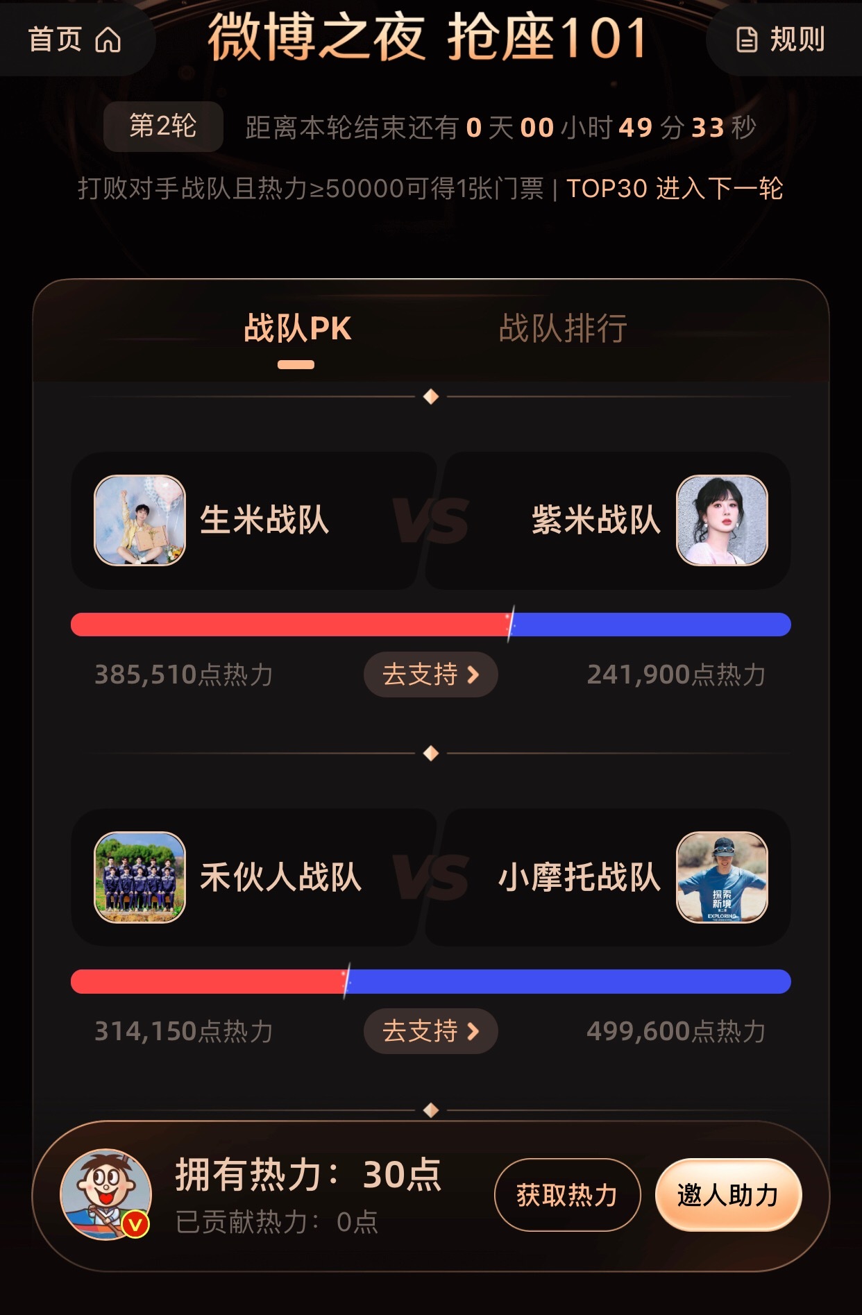 感觉今年微博车轮战的赛制不行啊,各家都没怎么玩,第一轮肖战梓渝粉丝比拼的异常激烈,其它明星粉丝直接摆烂了;第二轮,也差不多就迪丽热巴粉丝和田栩宁粉丝比的激烈,梓渝粉丝自娱自乐,其它家也是简简单单的玩;今天的pk感觉更是寡淡,各家都不太积极不太热血了微博之夜