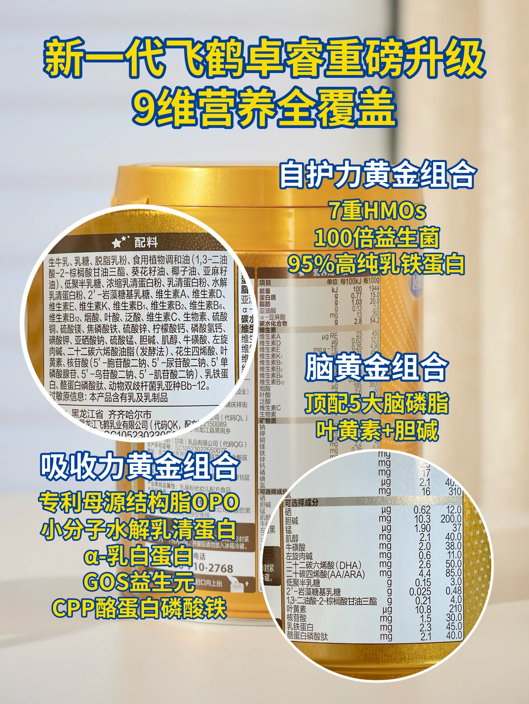 我做功课发现,它这次升级特别戳中我的需求点。首先是亲和好吸收,配方里有很多贴近母乳的成分,比如升级了HMO-2'岩藻糖基乳糖和Sn-2 DHA,在吸收效率翻倍的基础上还能呵护宝宝肚肚屏障,研究说这样搭配,营养结构和吸收效率都更接近原生。