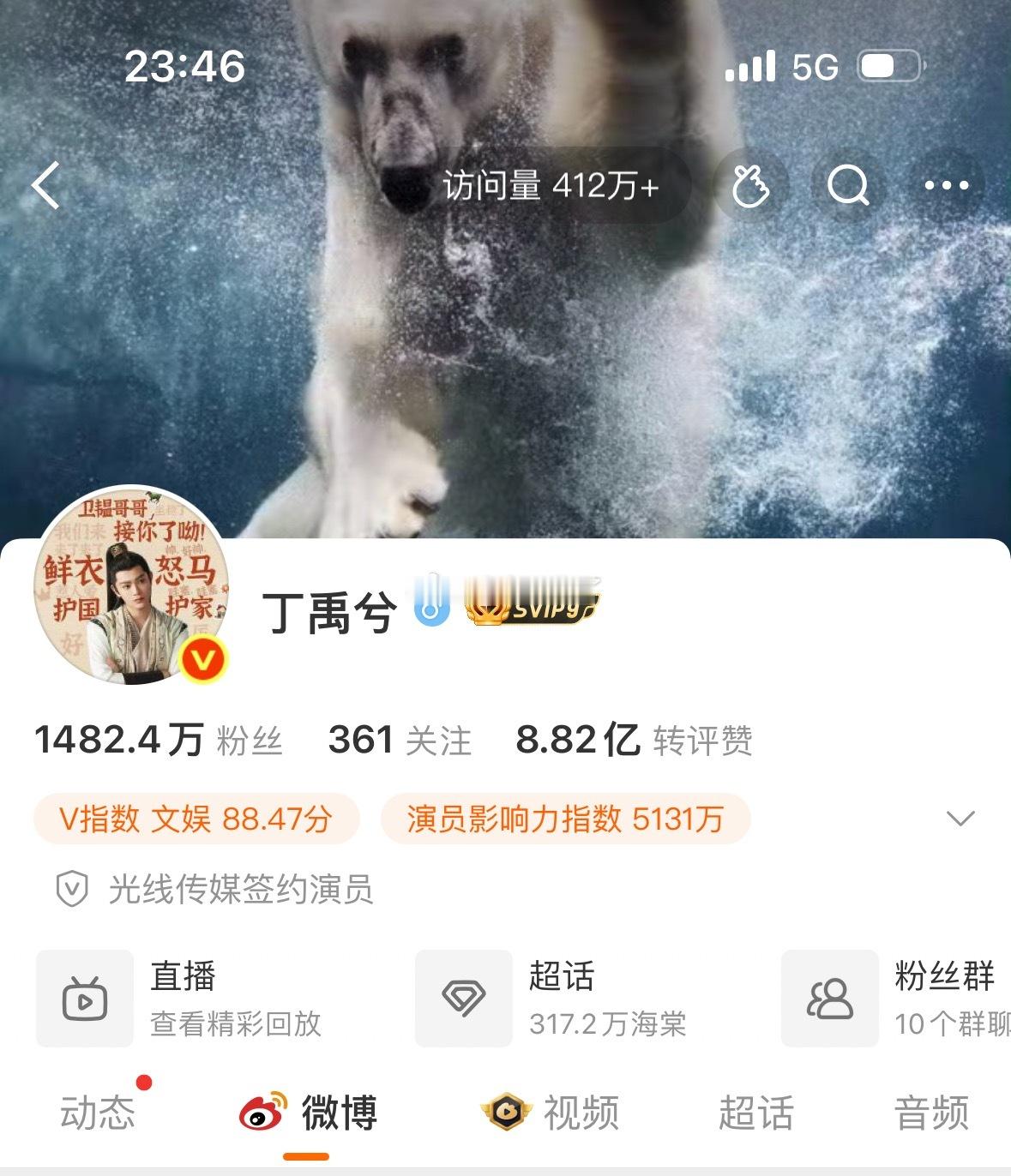 丁禹兮没播剧,主页访问量还是很高诶,412w+