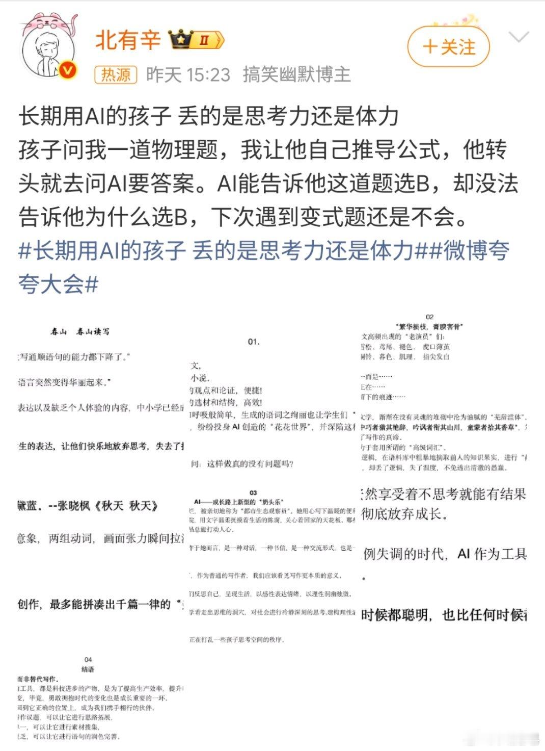 长期用AI的孩子丢的是思考力还是体力孩子长期依赖AI,是丢了思考力还是体力?A