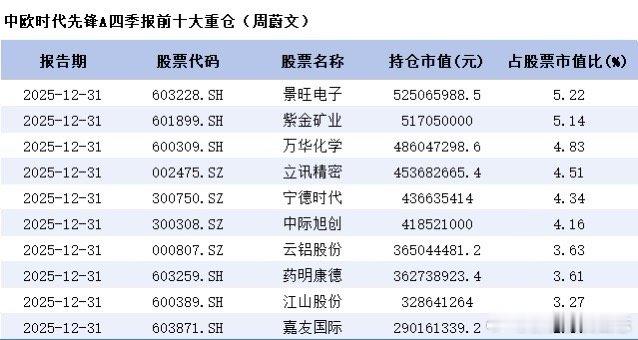 价值投资日志 中欧 周蔚文投资观点周蔚文在季报中指出了几个明确看好的方向。一是因供给约束或需求复苏而步入景气上行周期的行业。原因是,在全球流动性改善的前提下,供需平衡改善会带来价格见底或上涨的产业机会。具体来看,他提出了电解铝行业的贝塔机会,从持仓来看,云铝股份进入前十大重仓股。二是同样受益于产业趋势的储能行业。随着独立储能模式的全国推广,未来两年国内储能需求有望持续向好。三是以AI为代表的新兴产业趋势性机会。最后是保险行业。周蔚文提到,保险行业的负债端成本正随预定利率下调而降低,资产端投资收益向好,有助于缓解利差损担忧,叠加板块估值处于较低水平,当前是较好的配置时点。