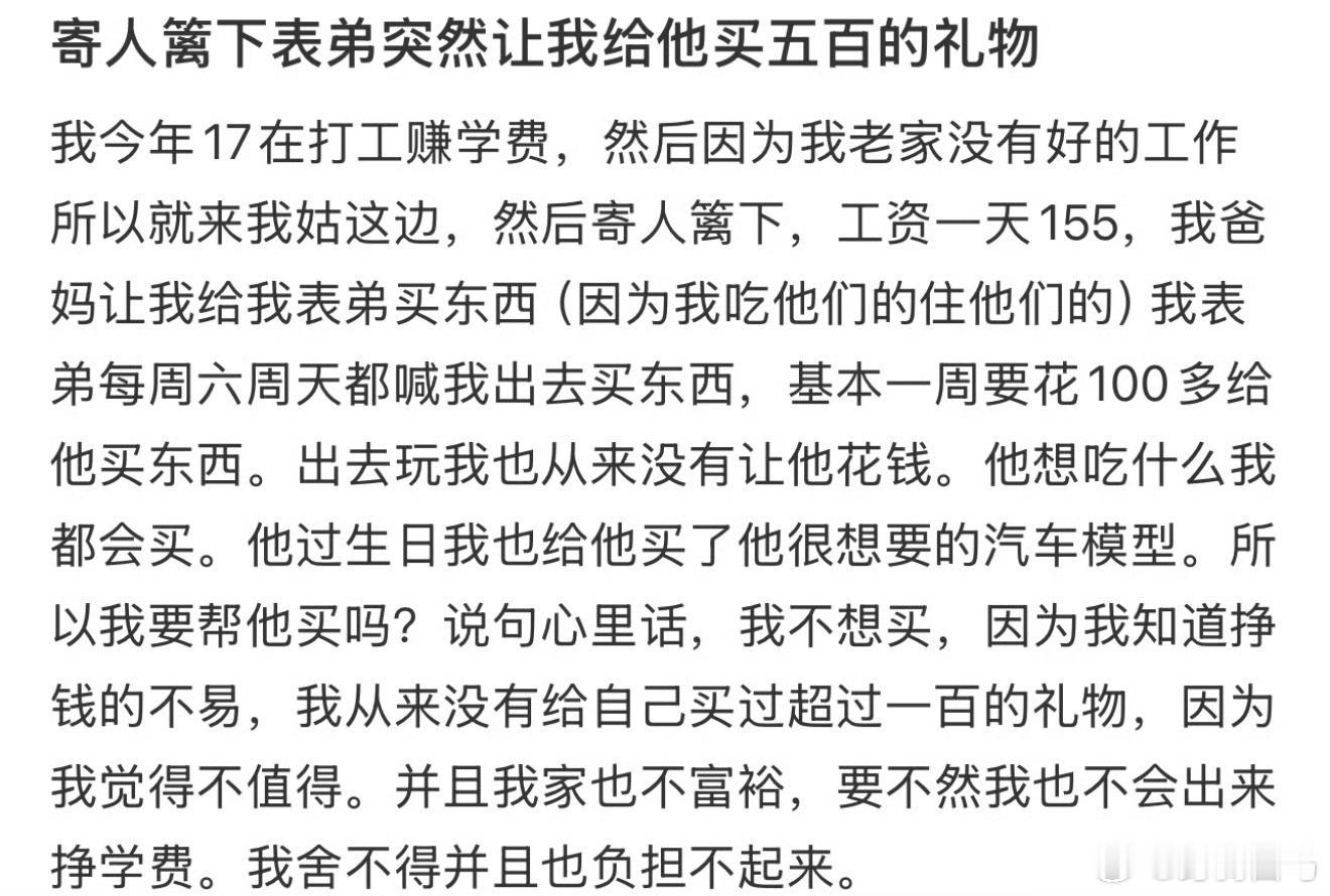 寄人篱下的表弟突然让我给他买500的礼物女生的钱都花在哪