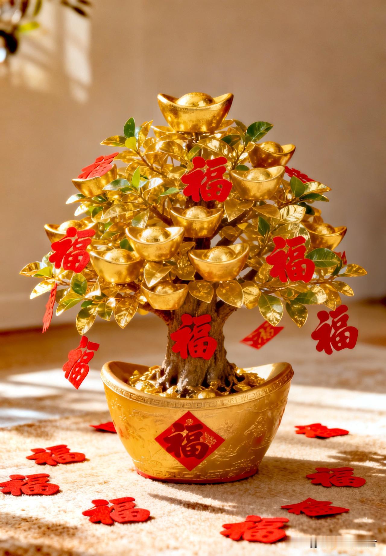 一盆发财树,四季纳百福。