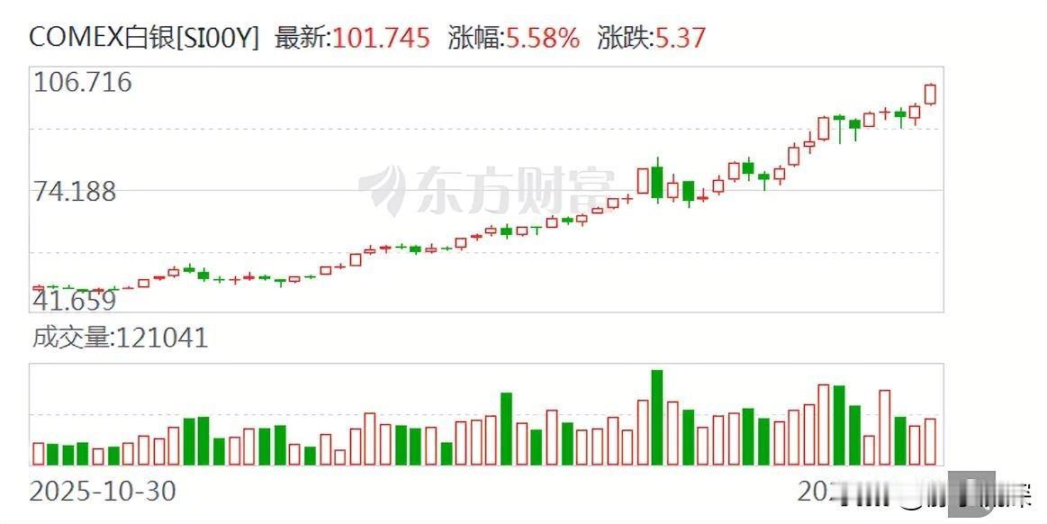 白银是真的猛,涨幅巨大时间又短,目前已经历史性突破100美元。回头看看这9个月,从27到54用时6个月,从50到100用时3个月,接下来会不会表演100到200用时1个月呢? 白银供需已经被打破,价格被严重低估了。像需求端以及工业用途白银目前是无法替代的,需求不会减少,而且随着ai发展,电路芯片大规模扩产,需求会大幅增加。白银现在一克也不贵,再怎么涨就几十块吧,大部分人都能买实物。 所以相对于通胀、货币供应量、债务规模、黄金价格和股市来说,白银还处于低位,还有不小的上涨空间。