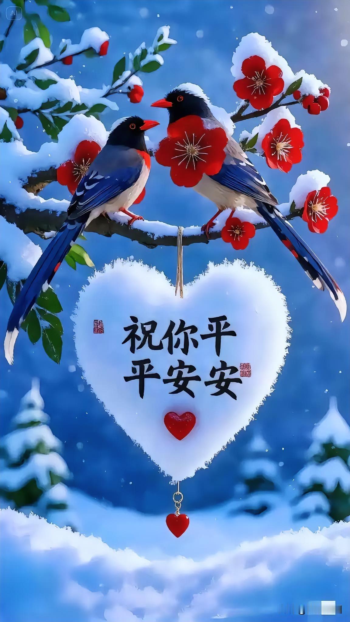 雪中红鸟语,平安愿永随。雪景祝福语 鸟语风景
