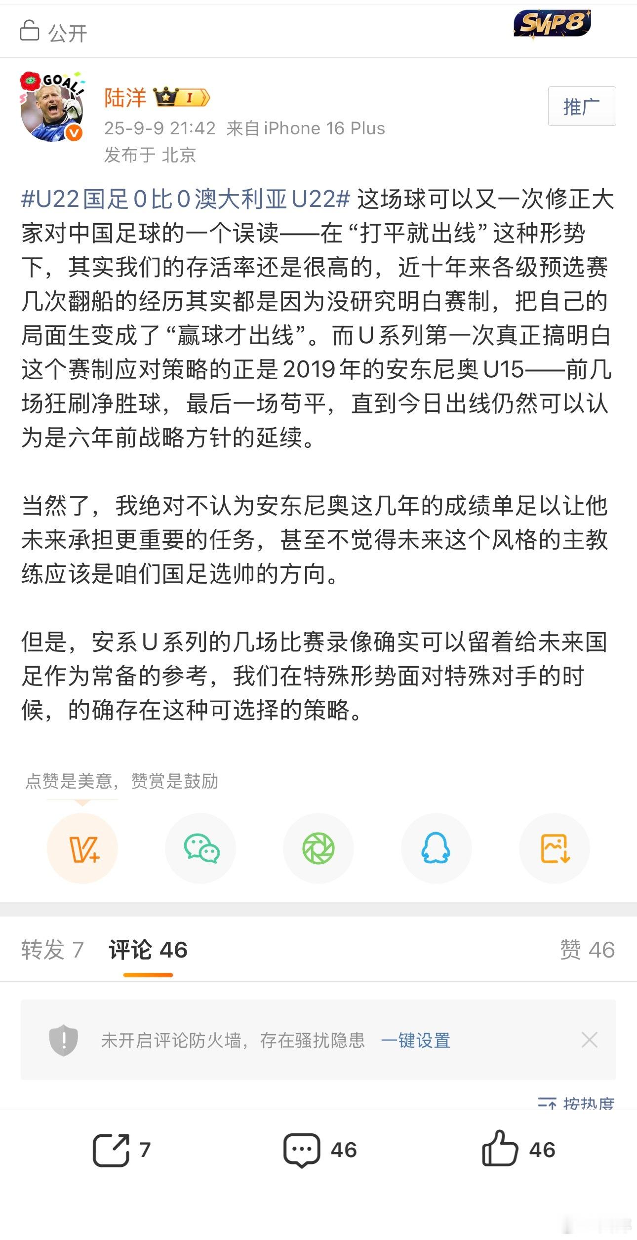 闲着翻看了一下去年9月份预选赛发的微博,确实很让人感慨。当时安指导这支球队第一场2-1惨胜东帝汶被各界集火,然后在王钰栋没出场的情况下45分钟仅仅领先海沟1-0,下半时纯靠小王救驾才打到了两位数。第二场踢完海沟之后发了个微博,回忆了一下足球世界里经常遇到的大起大落,还特别对比了2001世预赛的第一阶段,感觉和当年1-0小胜马代上半场落后印尼的场景惊人相似……(图1)想不到安指导还真的沿着老米当年慢起手倒立然后起飞的路线抖起来了,无论决赛结果如何他应该都是本世纪米卢里皮之外最成功的来华外教了。其实从预选赛到半决赛之前,这支球队的表现都没有跳出大家的刻板印象,“踢谁都是五五开”这句巧妙的调侃,翻译过来也就是遇弱不强遇强不弱遇水平相当的对手无惊喜。但和越南那场半决赛,球队在离奇的人员调整之后,忽然用离奇的方式放飞自我,完成了久违的淘汰赛大比分胜利,这的的确确是在公众的印象里加分太多了。在踢平澳大利亚晋级正赛之后,我的感想是安东尼奥不少比赛都可以作为未来国足的重要参考案例,但安指导个人不足以承担更重要的任务(图2),当时认可这个判断的网友超过半数,但此时此刻,如果再做个民调,可能这个比例已经不会高于20%了吧……对了,造成这种反差的除了U23成绩之外还有个不可忽视的因素——9月份大家可不知道国足会用本土教练哈u23亚洲杯决赛