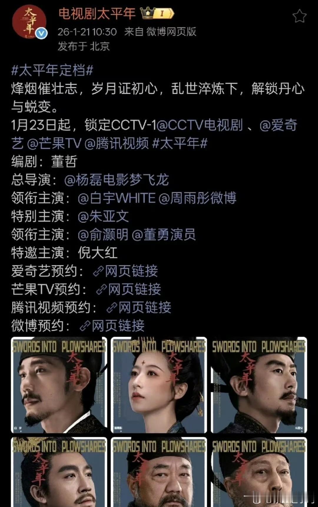 现在最气的就是保剑锋吧 太平年这样的年度大戏,一播出收视率就干到了第一,但是官方已经不带他玩了,原本定档19号又延迟到23号,新定档的官员文里都不带他,特邀主演只有倪大红一个人了,剧组应该和他沟通过了他很安静。 真的是只差临门一脚吧,这部戏都要播出了来了这么一出,等于一辈子的好口碑全白费了,没有体面老去又添一员大将。