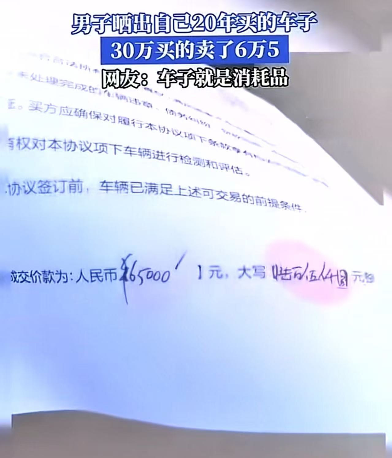 太扎心了!男子2020年花30万买的车子,二手只卖了6万5!网友:现在的车子就是消耗品,买越贵亏的越多!还不如打车合算!