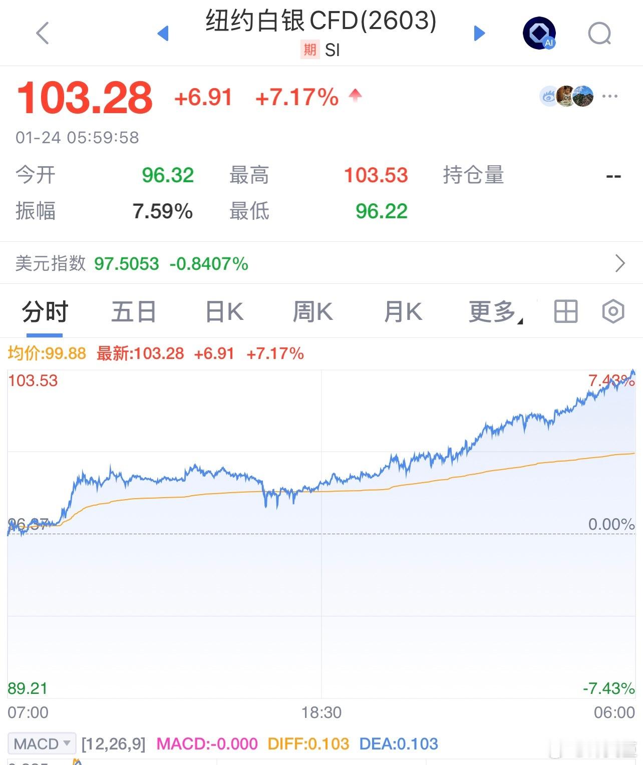 每天早起打卡老板们早安,打卡养铁咯许文臣许文臣 昨夜美股三大指数涨跌不一。截至收盘,道琼斯指数跌0.58%,报49,098.71点;标普500指数涨0.03%,报6,915.61点;纳斯达克指数涨0.28%,报23,501.24点。热门中概股涨跌互现,纳斯达克中国金龙指数跌0.26%。黄金、白银,再创历史新高。。。 白银突破100美元银价波动 黄金