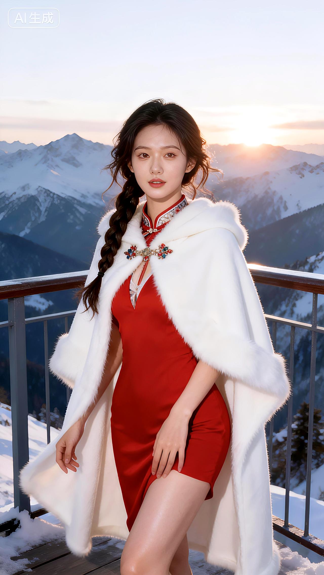 雪岭晨光淬玉肩,素影凌风望云巅。豆包 壁纸 写真