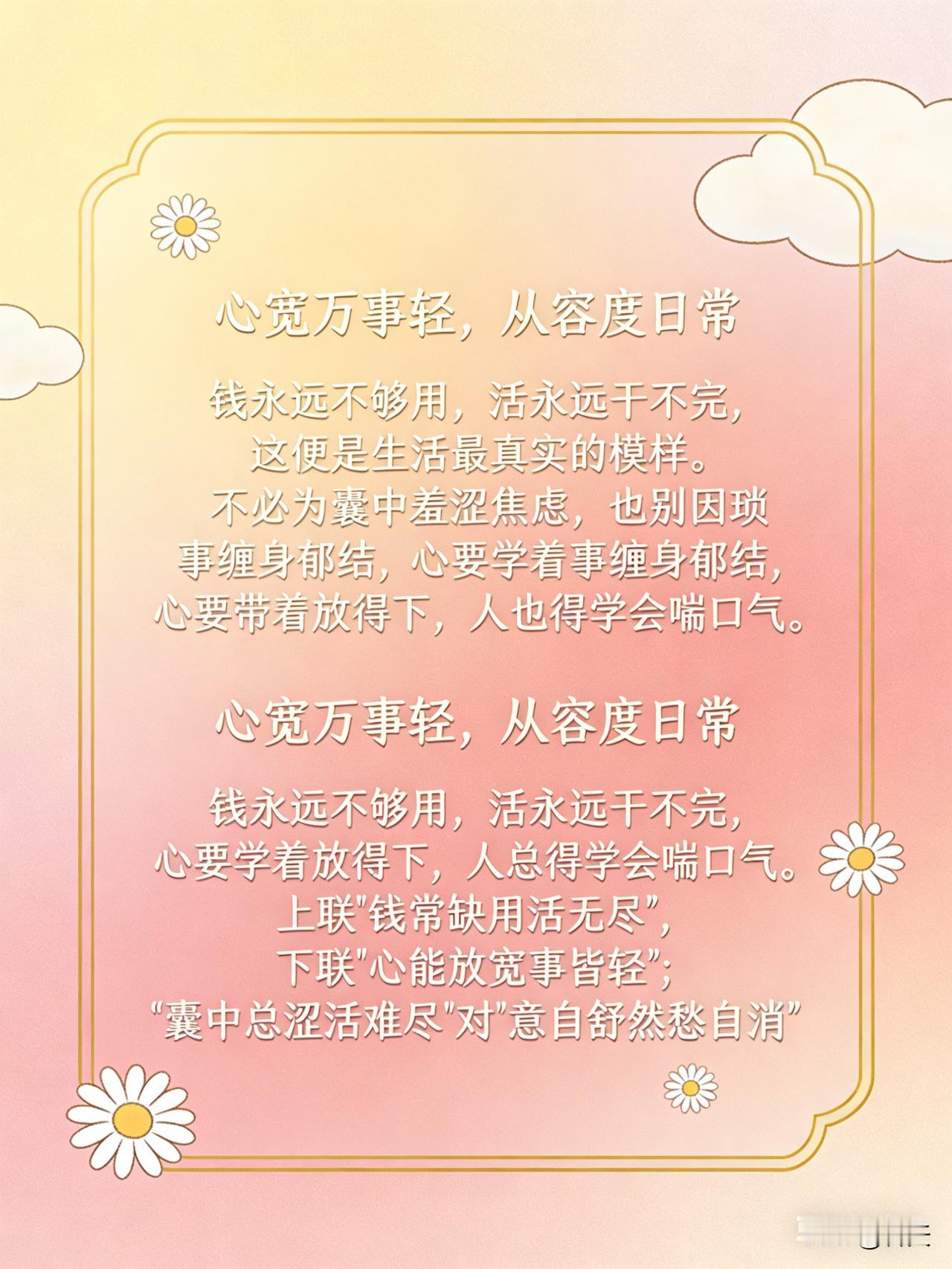 以钱为底气,以实立天地 身处社会,总要现实一点。有能力有本事,才拥有骄傲的资格;若暂无底气,便闭上嘴、收住心,专注琢磨如何赚钱。别再空谈“钱是身外之物”,那不过是对逝者的慰藉——活着的日子,哪一天离得开柴米油盐? 没钱,所谓的面子与尊严都是空谈。喜欢赚钱、存钱,从不是贪婪的欲望,而是安身立命的底气,是抵御迷茫的筹码,是守住尊严的铠甲。看透这一点,便懂从前的天真幼稚。唯有踏实搞钱、稳稳前行,既不辜负努力,也善待自己,方能在世事变幻中站稳脚跟,活得从容体面。