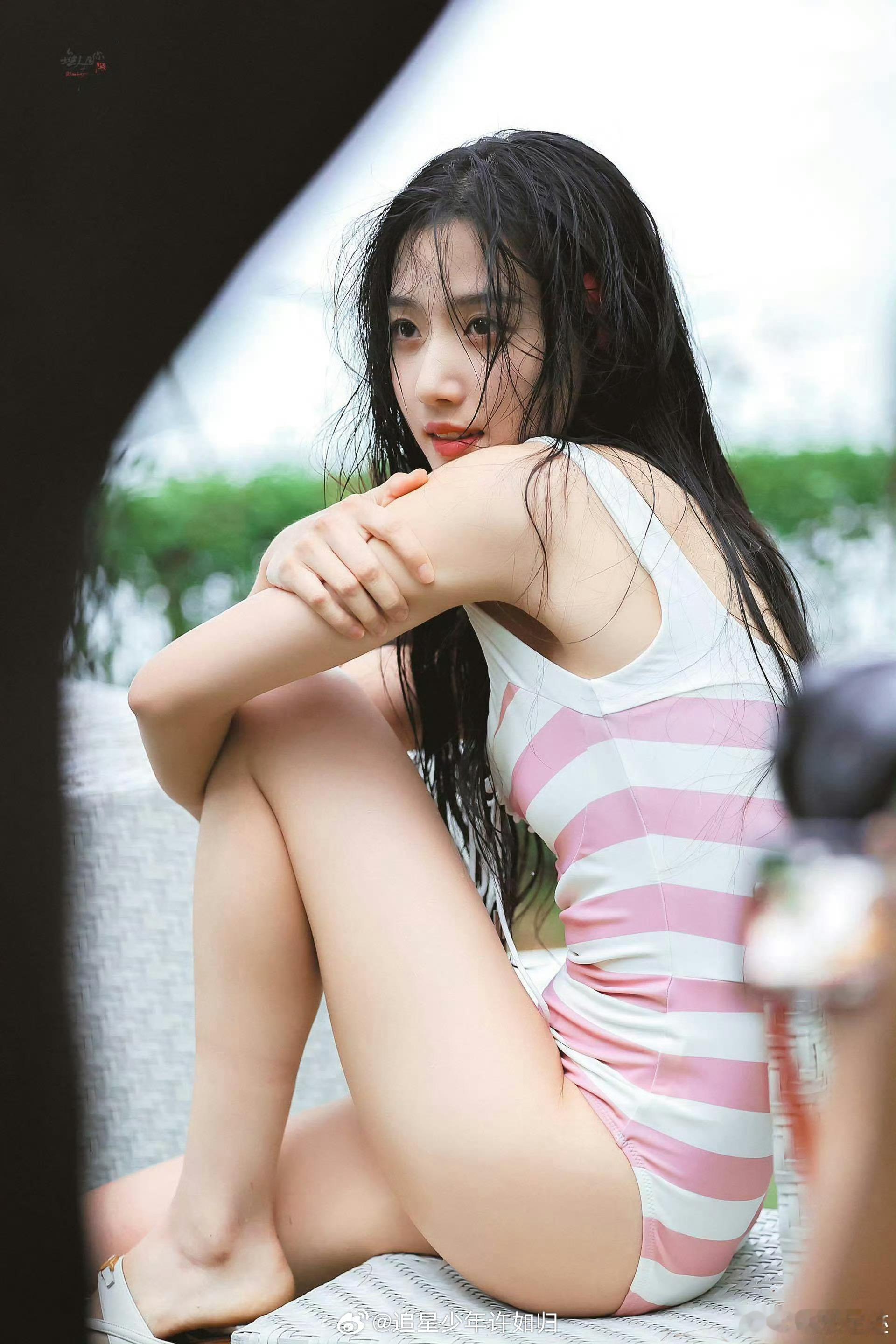 哇塞!居然第一次见卢昱晓这组泳衣照,真的有种出水芙蓉的感觉呀
