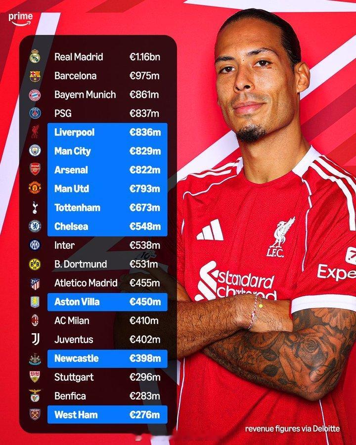 上赛季,在全球足球俱乐部收入排行榜前20名中,有九支球队来自英格兰足球超级联赛,这正好说明了为什么英冠球队也能与法甲球队(巴黎圣日耳曼除外)竞争。看看英超的收入优势就知道了。金钱的力量不容小觑阿森纳著名教授 英超联赛