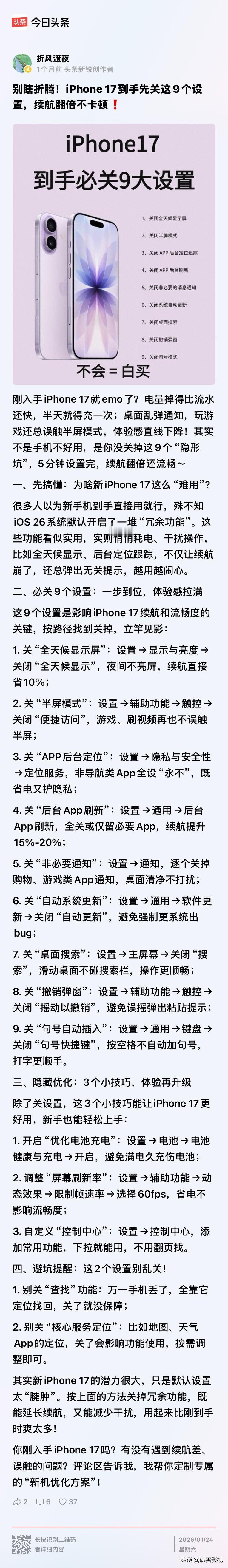iPhone17开机必设功能
