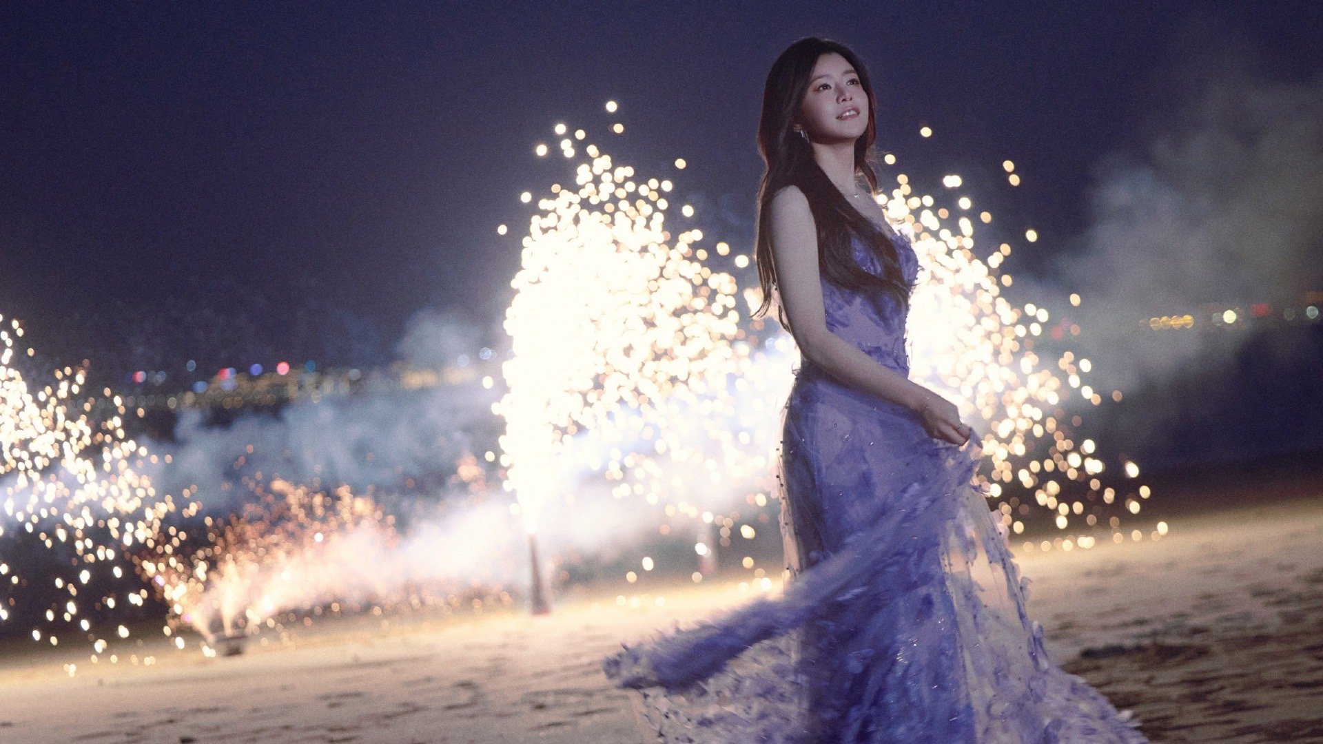 陈妍希海边烟花大片 裙摆扬起的弧度,刚好接住炸开的烟花。陈妍希用一袭淡紫长裙,完成了与夜空的完美对话。这才是真正的“人景合一”,每一帧都在重新定义浪漫。