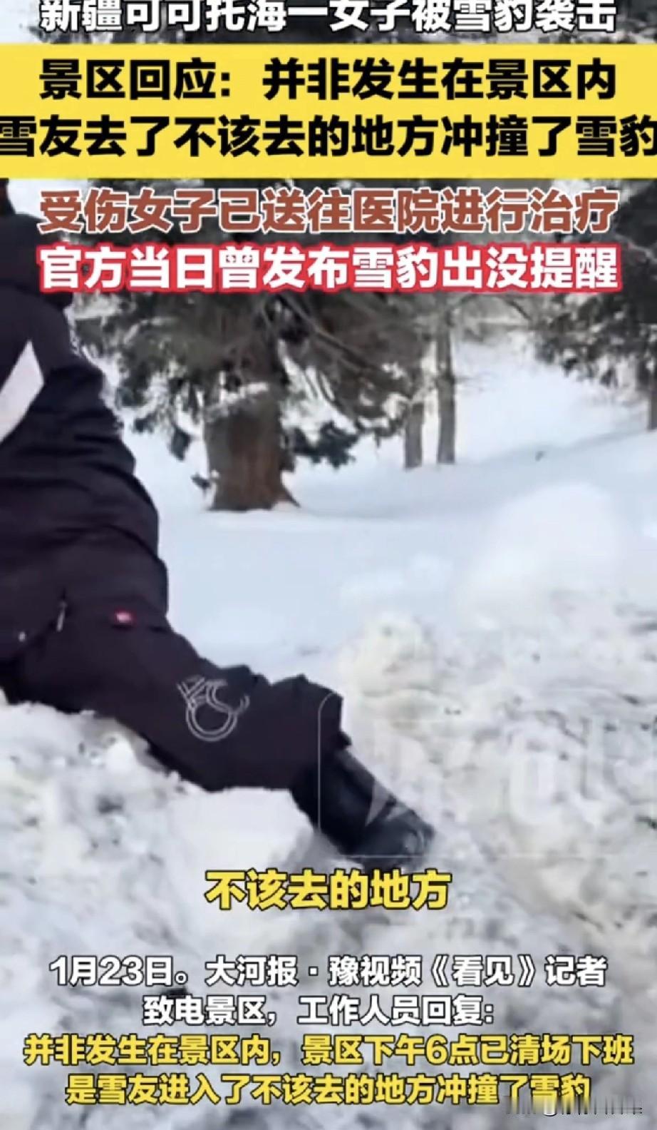 1月23日晚,新疆可可托海发生雪豹伤人事件。一名女游客在非景区区域被咬伤面部,网传她冲上去想摸豹拍照,同行男性吓得四散逃跑。最后靠“抱头装死”才等到雪豹离开,被众人救出。 景区回应:事发时已闭园清场,游客进入了“不该去的地方”。而且官方当天刚发过雪豹预警。 雪豹避开头盔和厚雪服,专挑面部下口,这根本不是“猛兽袭人”,而是动物的本能防御。这件事,你怎么看? 📊 投票互动 你认为这次事件的主要责任在谁? A. 游客自己,无视规则硬闯禁区 B. 景区,没有做好足够的警示和管控 C. 双方都有责任 D. 雪豹,不该攻击人类 雪豹是国家一级保护动物,它不会为这次攻击付出代价,但伤者却要带着伤疤度过余生。 在自然面前,人类的傲慢和无知,才是最致命的猛兽。 最后提醒大家:户外的尽头不是流量,是安全。别让一次冲动的打卡,变成一生的遗憾。