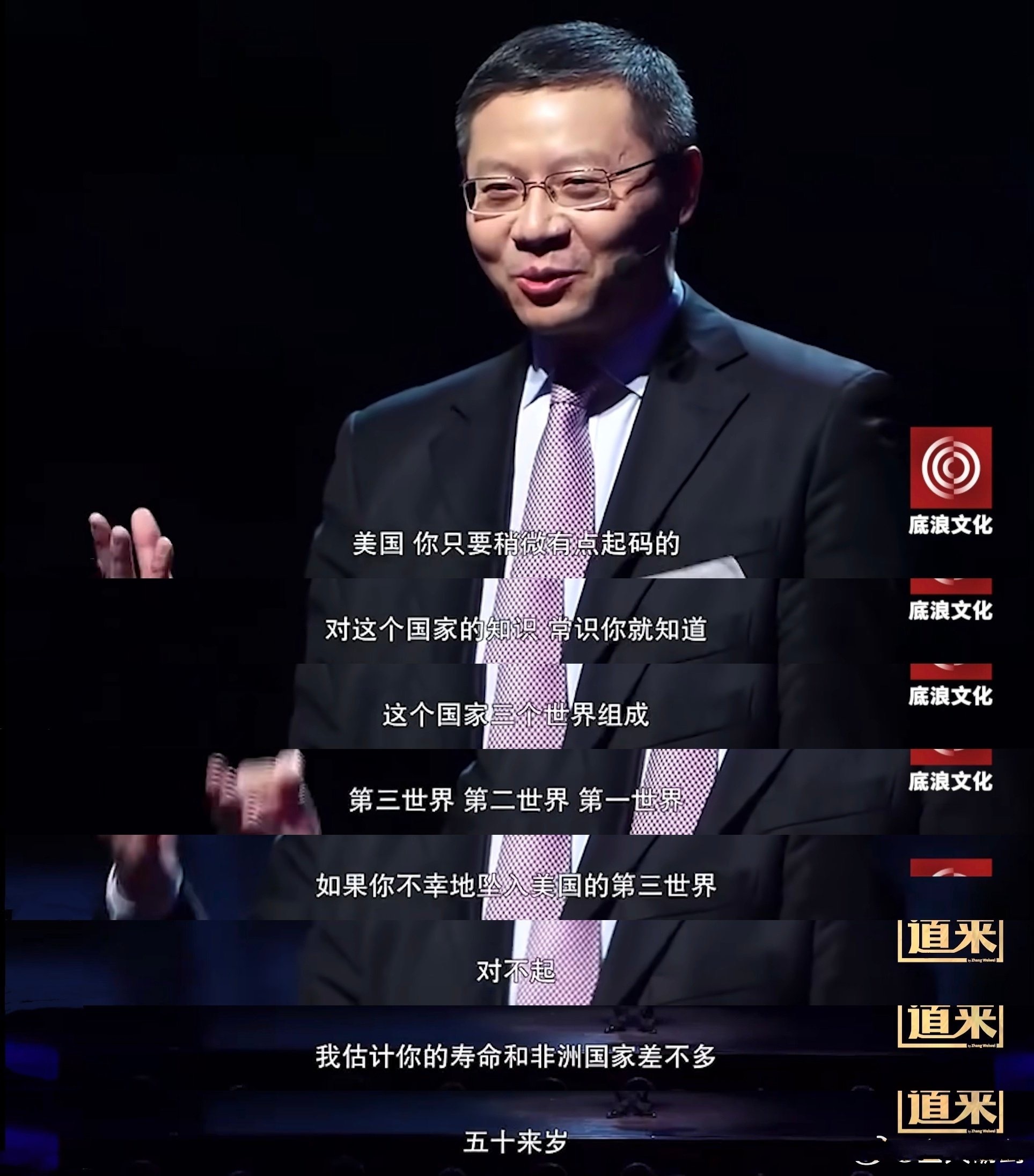 美国是由三个世界组成,第三世界、第二世界、第一世界。如果你不幸地坠入美国的第三世界,寿命将跟非洲国家差不多。维为老师是儒雅做派,文质彬彬,道理讲了,但是语言太软糯。没有见识过美国的环境,是想象不出来的。牢A一句“斩杀线”,简洁明快,相当于一脚“世界波”,震撼力超过所有如软糯的文字。