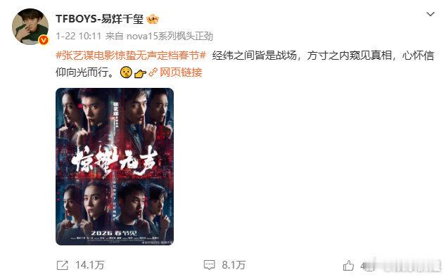 易烊千玺惊蛰无声热度《惊蛰无声》热搜词云,易烊千玺占比很高,热度断层第一!易烊千玺声量好大,严迪警官大出圈,春节都来电影院看《惊蛰无声》 00后新生代热点捕捉计划
