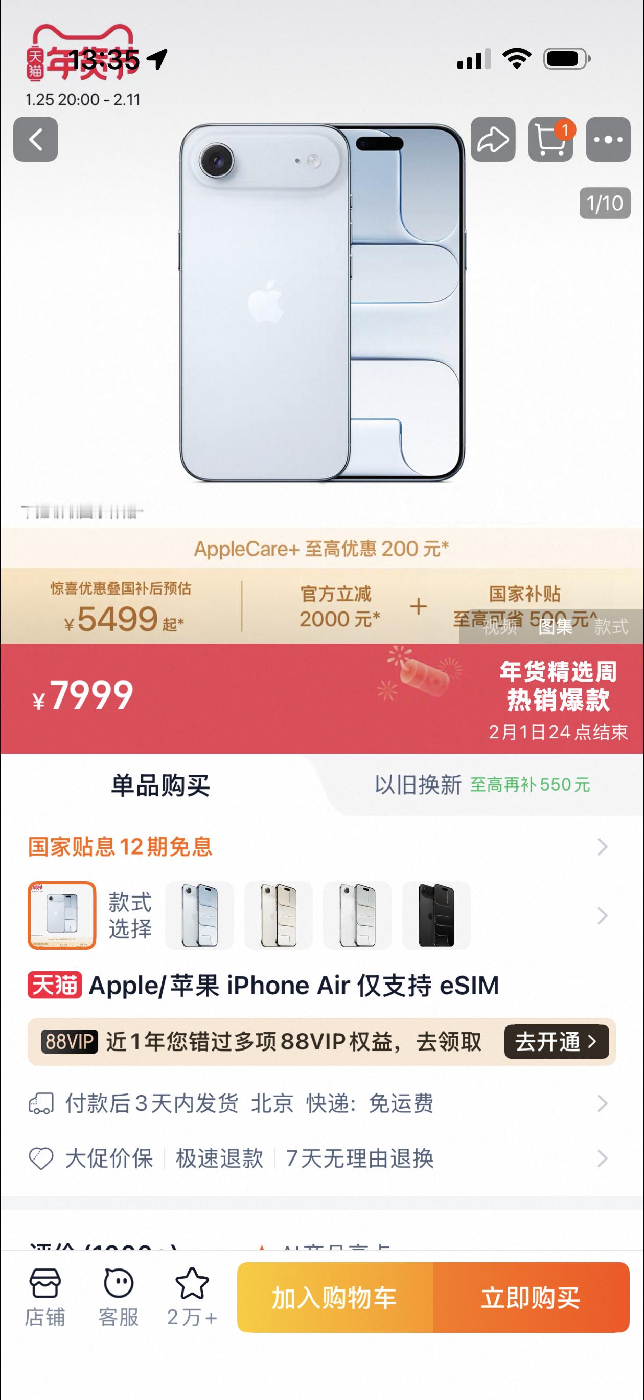 明天晚上八点就可以在苹果天猫旗舰店买 5499 的国行 iPhone Air 了,一共 13000 台,有人准备买嘛?