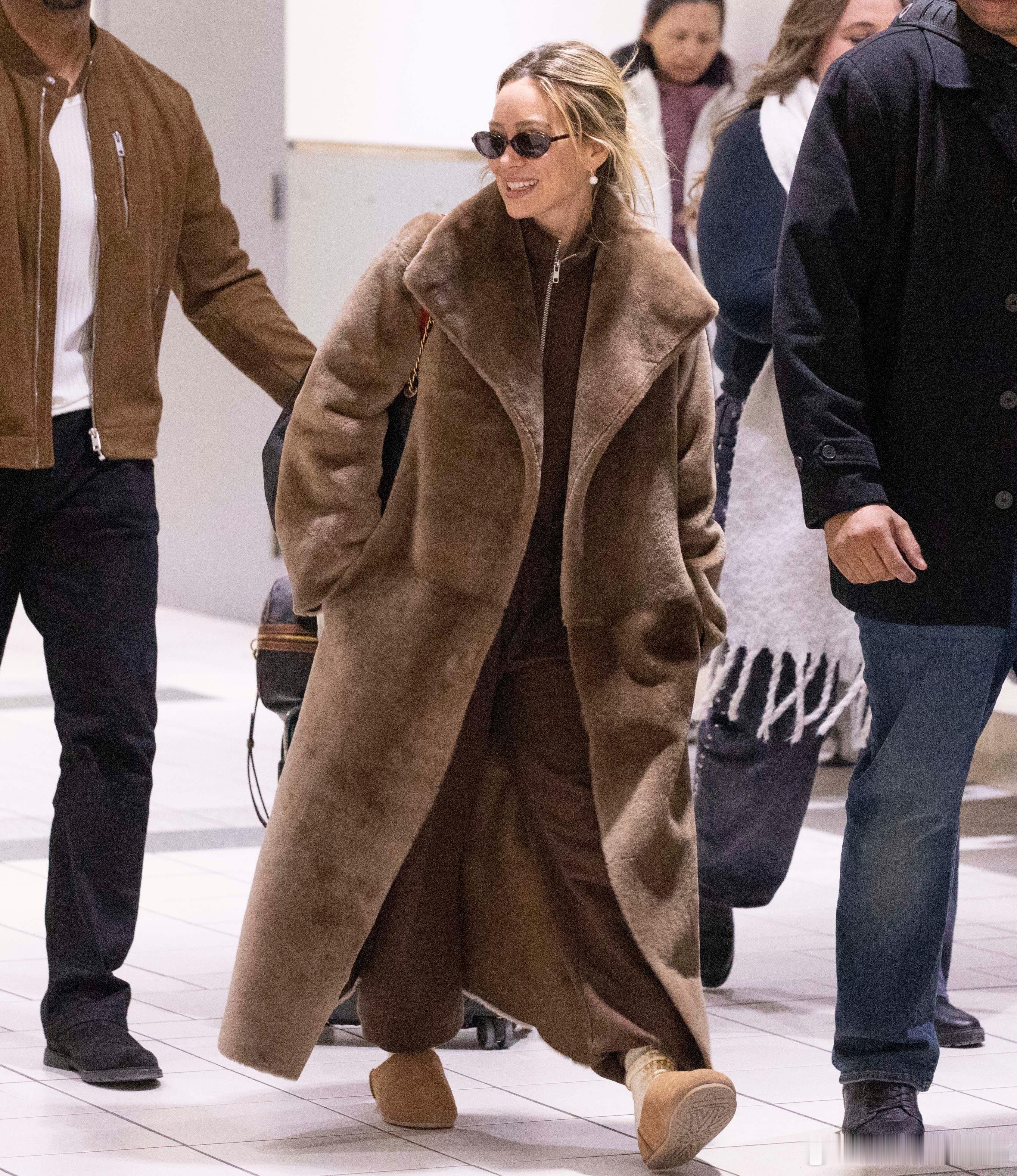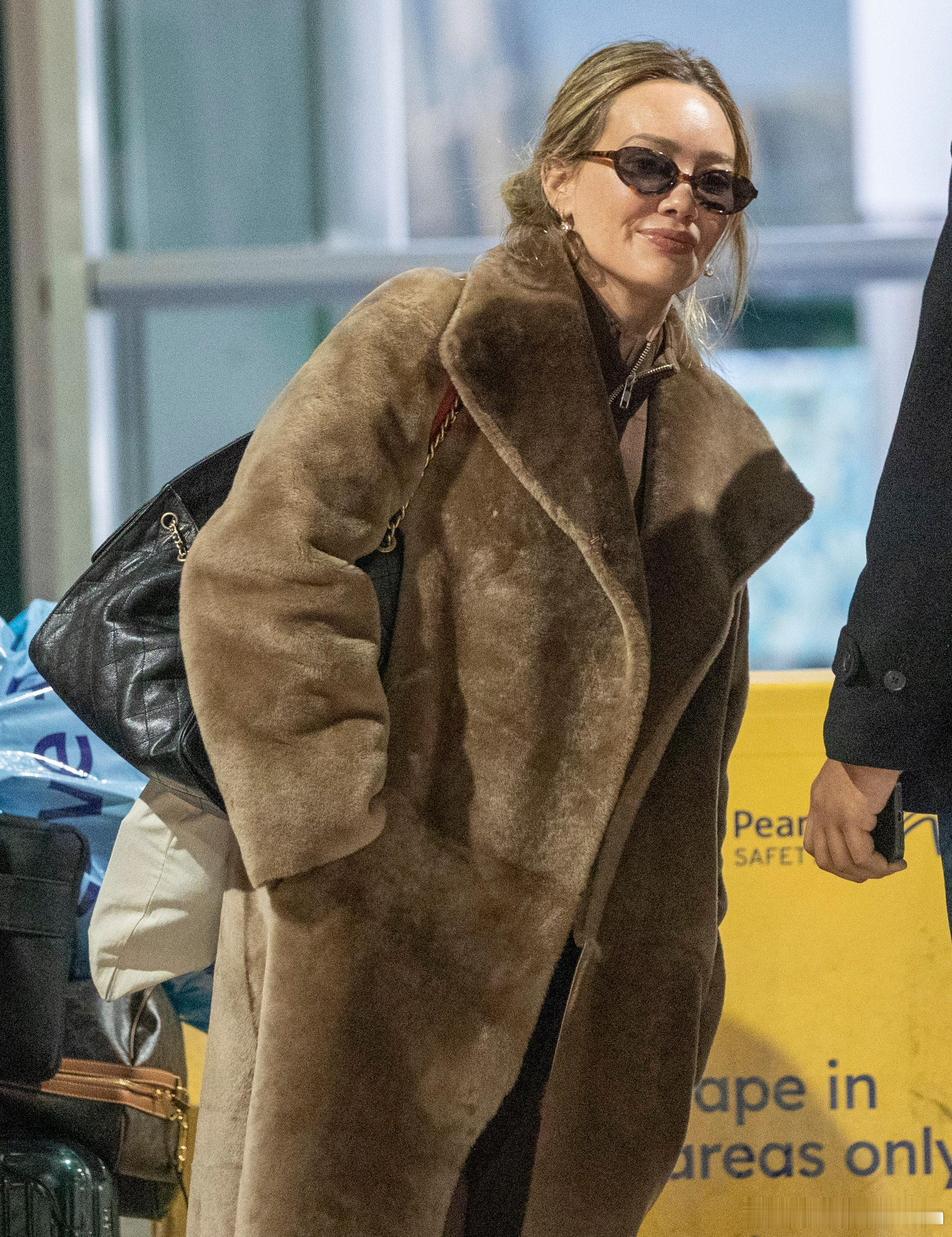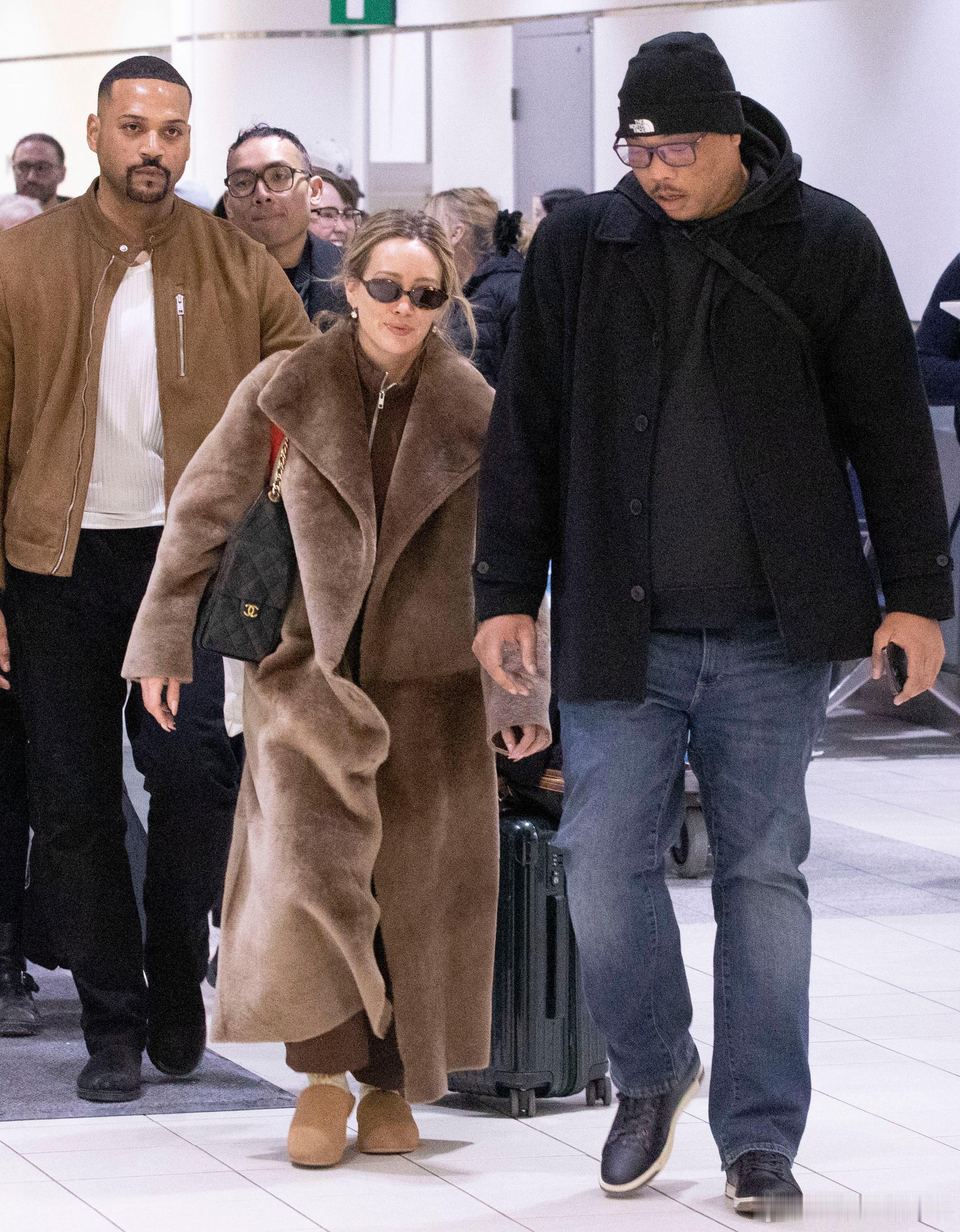 Hilary duff希拉里达芙身着长款毛大衣抵达加拿大多伦多,准备到当地进行第二场个人演出