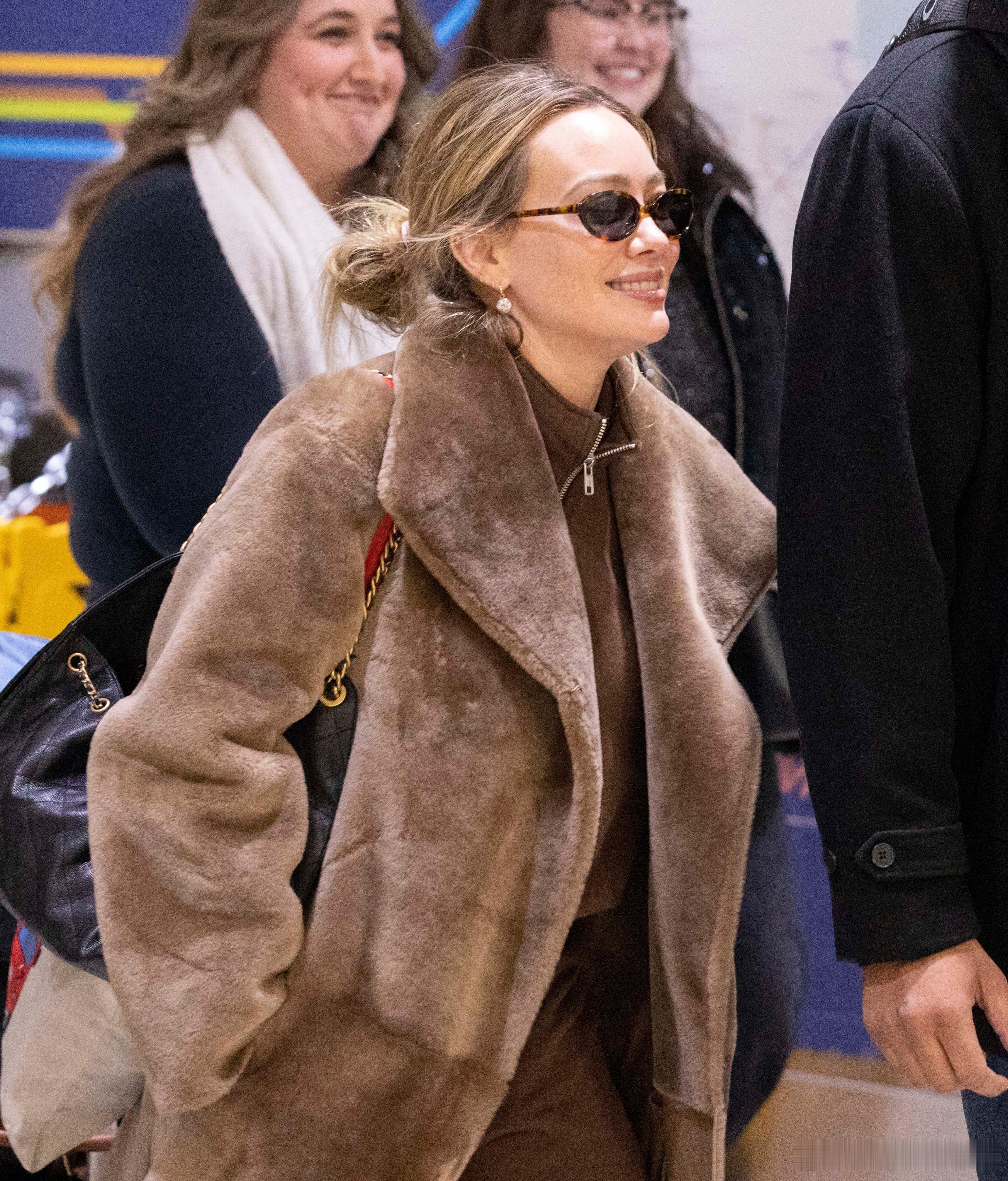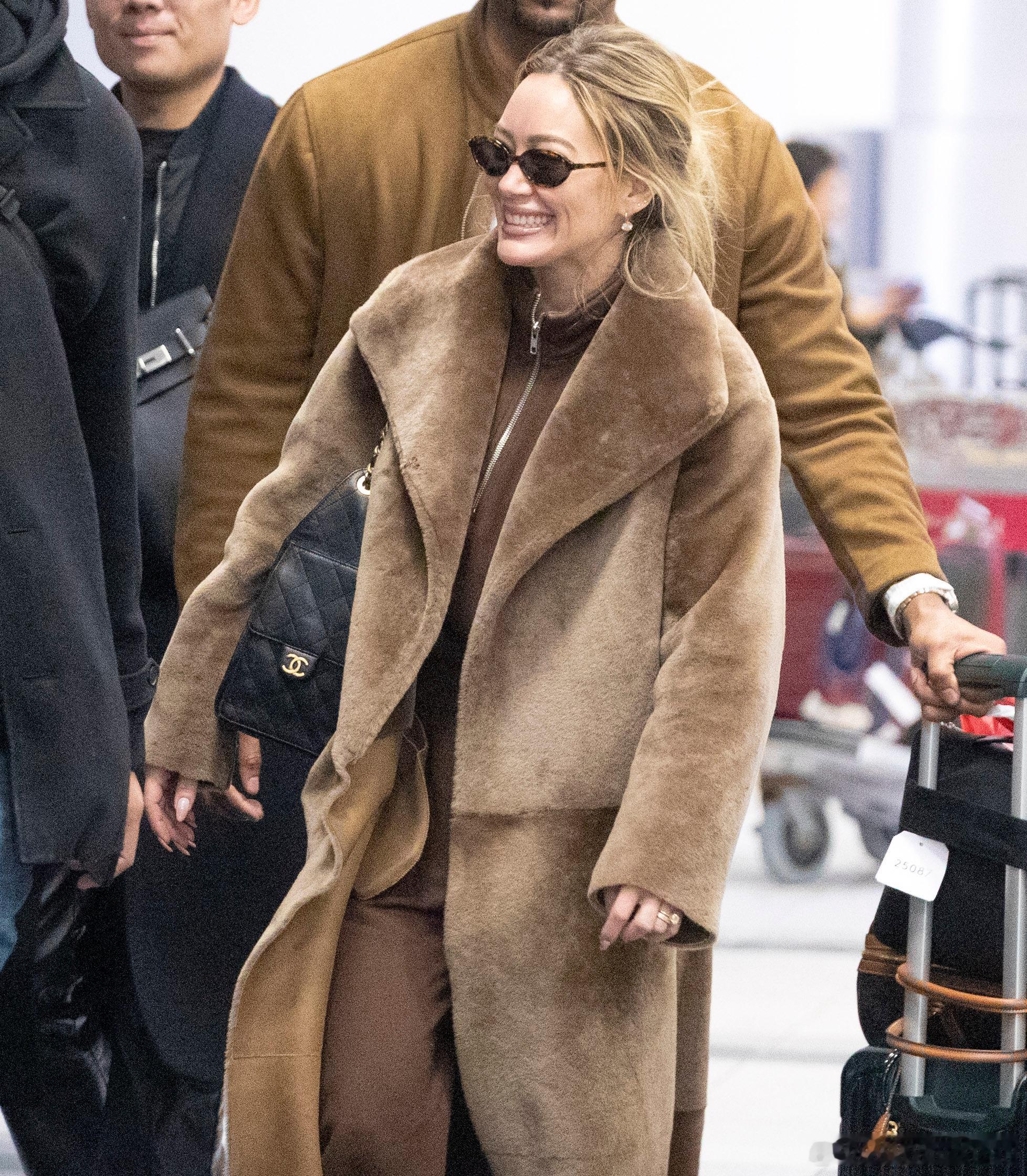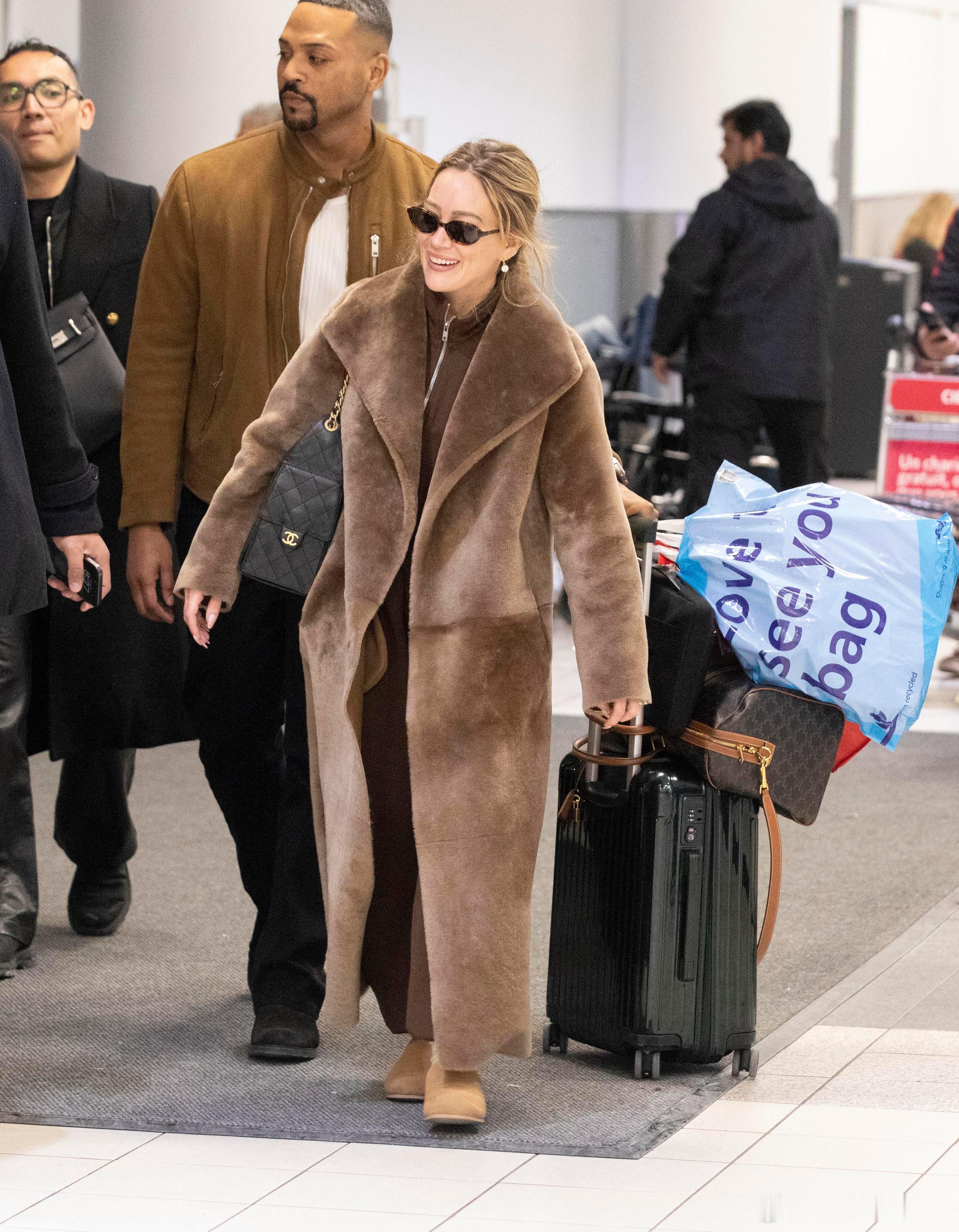 Hilary duff希拉里达芙身着长款毛大衣抵达加拿大多伦多,准备到当地进行第二场个人演出