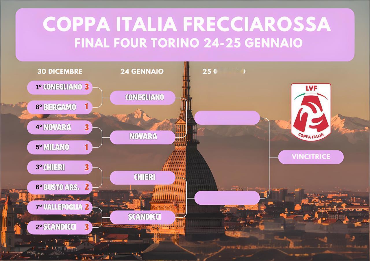 【女排意大利杯总决赛赛程】 女排意大利杯即将决出冠军! 半决赛对阵情况如下: 1月24日 22:30 科内利亚诺vs诺瓦拉 1/4决赛科内利亚诺3:1贝尔加莫 诺瓦拉3:1淘汰米兰,埃格努空砍27分 1月25日01:00 斯坎迪奇vs基耶里 1/4决赛斯坎迪奇3:2险胜瓦莱福里亚 基耶里3:2布斯托阿西齐奥 决赛:1月25日 22:00 预计企鹅体育会直播比赛! 海报上面代表科内利亚诺的是加比和哈克