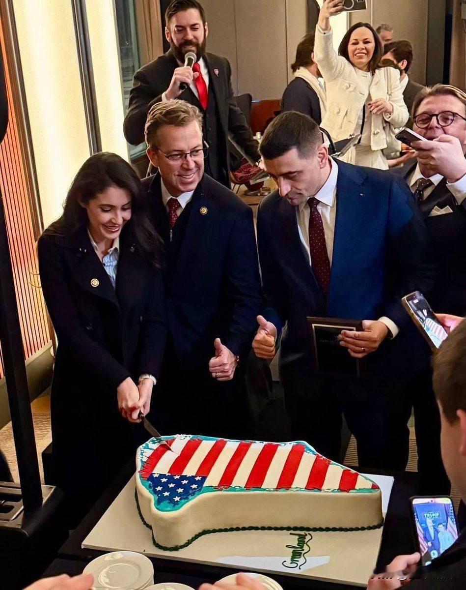 盟友也分, 1月份在华盛顿肯尼迪中心举行的一场活动中,共和党人象征性地“瓜分”了一块形状酷似格陵兰岛、装饰着美国国旗图案的蛋糕。 此举就跟几个世纪前欧洲殖民者一起分殖民地一样,充分显示了它们的野蛮,一位来自“共和党国家复兴组织”的组织者称格陵兰岛为“美国第51个州”。