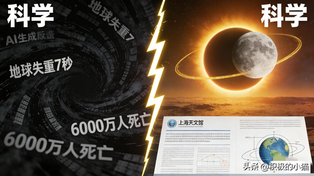 地球失重7秒致6000万人死亡?假的! 这则消息从头到尾都是编造的谎言,毫无科学依据。 所谓2026年8月12日地球失重,不过是把常规日全食和离谱谣言强行绑定。地球引力源于自身质量,只要质量不变,引力就不会凭空消失,日食仅会引发微小潮汐变化,何来失重一说?NASA辟谣的“锚定计划”更是子虚乌有,发布者本就劣迹斑斑,专发虚假信息。 更可笑的是,谣言背后藏着生意经。编造者用AI生成惊悚内容制造恐慌,实则为了推销修心、转运类服务,利用公众天文知识的空白收割流量。 这类末日谣言屡见不鲜,看似言之凿凿,实则经不起基本科学常识的推敲。与其被虚假信息裹挟焦虑,不如相信上海天文馆等权威机构的科普。毕竟,真正的天文探索从不是制造恐慌,而谣言,终究会被科学戳破。