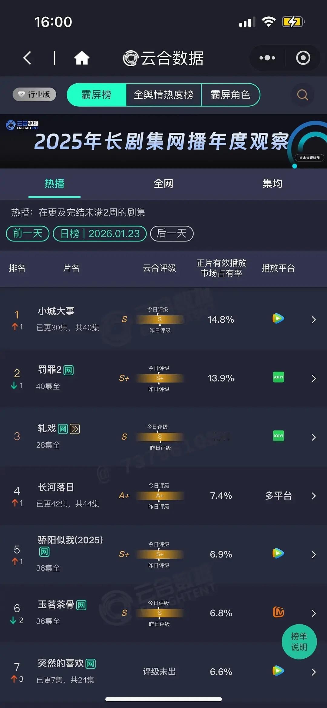 大城小事终于登顶轧戏到不了集均1500,1300左右吧突然的喜欢 次日6.6% 翻2倍 1100+太平年 首日3.3% 500+ 麻麻吧,看首页反馈评价都不太好