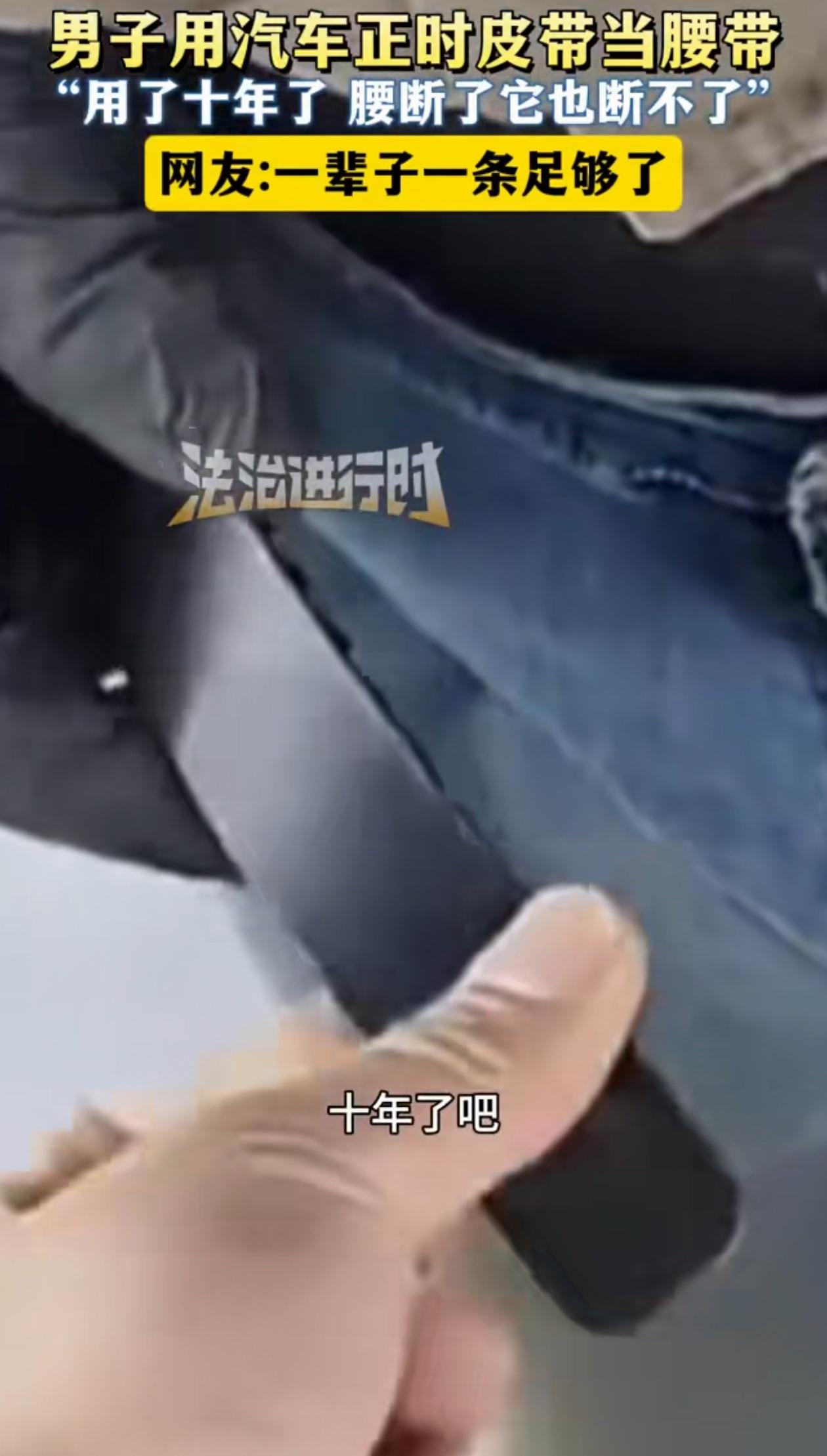不服不行!山东,男子去汽修厂修车,发现师傅腰上的皮带很特别,就好奇问了一嘴,没想到师傅说这是汽车正时皮带,而且已经用了10年了!网友:“这玩意耐用,腰断了它也断不了!” 谁规定腰带就必须是皮革的、布料的?这位师傅就用他的独特创意给我们上了一课。 视频里男子扒拉着他的腰带,问:“大哥你这腰带是什么玩意?” 边说他还边放在手里仔细观察,师傅也没生气,回答说:“这是汽车正时皮带。” 男子一听立马来精神了,又追问:“那你用了几年了?” 大哥略一思索,想了想回答说:“大概用了10年了吧!” 男子听到这个回答也是有点惊讶,连连赞叹,说:“还是这玩意耐用啊,竟然都用了10年了!” 见男子夸赞自己的腰带,师傅也骄傲了起来,吹嘘道:“这玩意绝对耐用,就是我腰断了它也不带断的。” 听了这话,男子连忙竖起大拇指,直夸好家伙真棒。 这件事也是引起了网友的热议。 有网友说:“好家伙,原来最好最耐用的离我这么近?!今天上班就把老板的A8正时皮带给他卸了…” 也有网友说:“在我们农村,老一辈有用火车轮胎皮做的鞋子,能穿几十年,叫辈子鞋!” 还有网友说:“我是厨师,用猪大肠当腰带不过分吧!” 这事儿能引起大家共鸣,说明大家心底里都欣赏这种“物尽其用”的聪明。换成别人可能想不到要把汽车皮带拿来做腰带,但这位师傅不仅想到了,而且效果还不错,这种小聪明本身就有一种成就感在里面。 你还见识过哪些新鲜的创意? (信息来源:法治进行时)