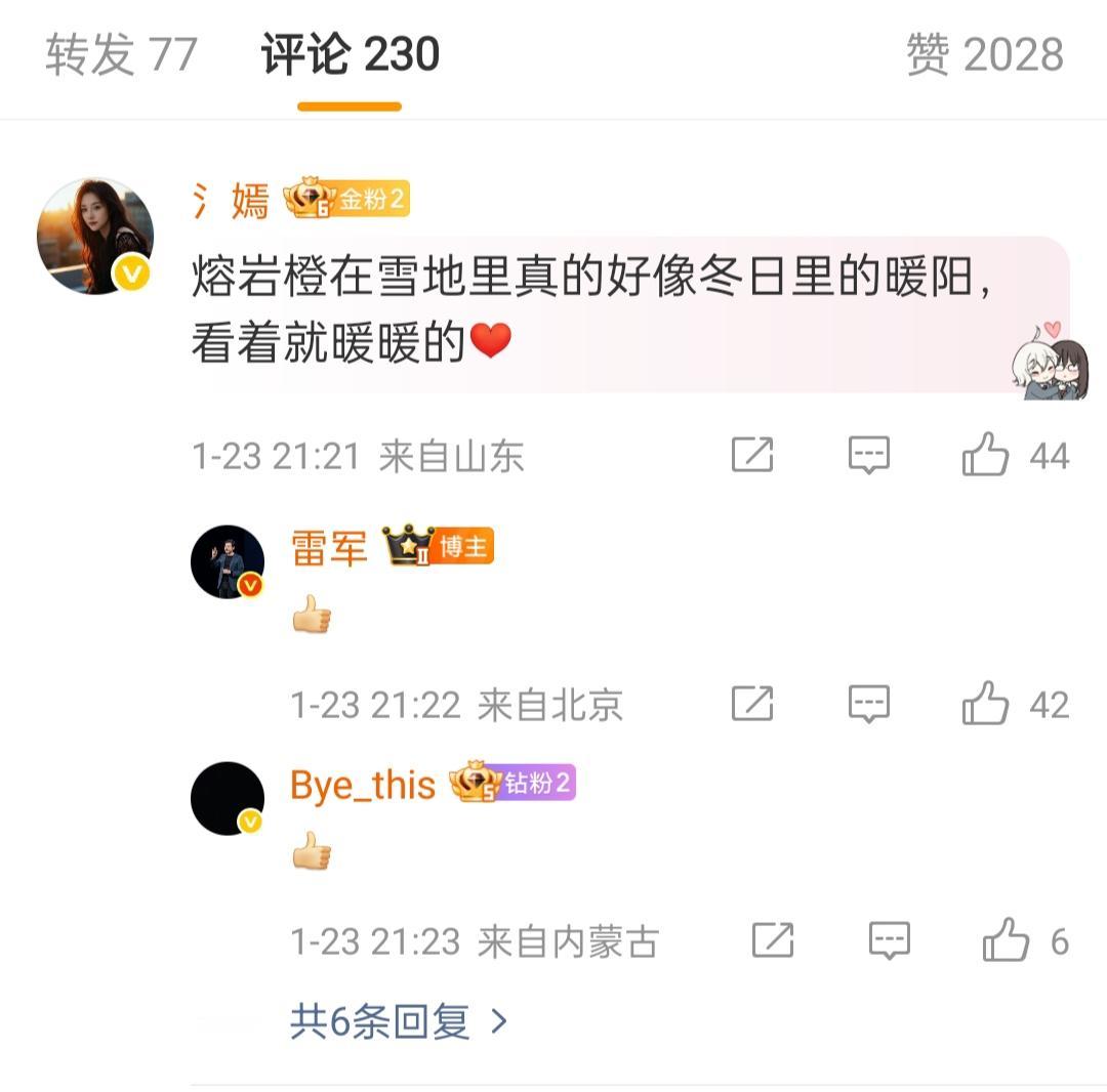 小米雷军谈阿尔山。1月23日晚上9点多钟,雷军先生看到了某博主拍摄的阿尔山视频,随即发文称,阿尔山的冬天雾凇不冻,河冰湖上的烟花…… 有网友评论说,熔岩层在雪地里真的好像冬日里的暖阳,看着就暖暖的。雷军表示赞同。 还有网友夸赞雷军好会写文案,有网友附和说,他可是理科中的文艺青年呐! 阿尔山是内蒙古的著名景点,历史悠久,更是个游玩的好地方。阿尔山不止冬天的美丽,其他季节也不赖,夏天能在森林里吸氧,秋天漫山金黄像画儿一样。不管是想赏景、放松,还是感受不一样的风土,来这儿都合适,难怪连雷军都被它的魅力打动。