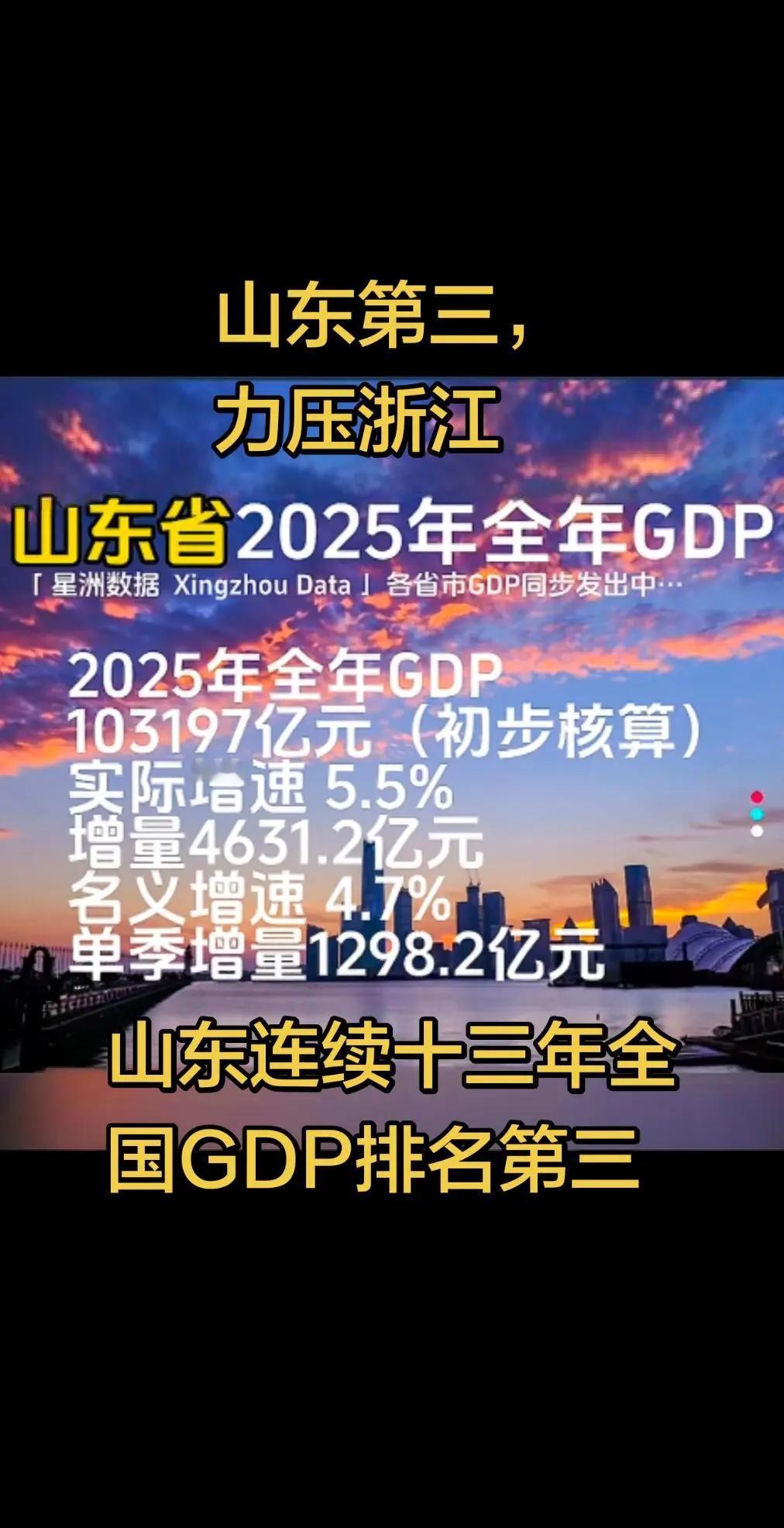 山东2025GDP也出来了,力压老浙一头,还是全国第三大省