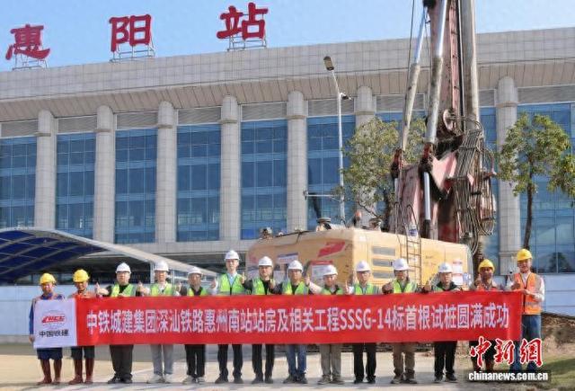 中新网广州1月24日电(郭军钟生辉)1月24日,伴随着旋挖钻机的轰鸣,由中铁城建承建的深汕铁路惠州南站项目首根站房试桩顺利开钻,标志着惠州南站站房工程正式开工。