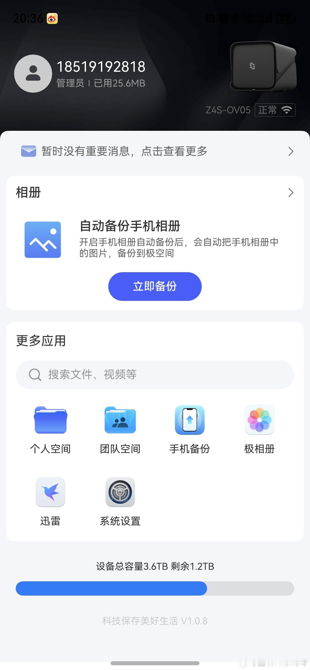 且听长测鸿蒙6 这个话题好久没更了,主要是感觉日常用着挺顺手了,APP功能性的完善,和安卓iOS也没啥太大的区别…想起来更,是发现我们工作室用的NAS鸿蒙版升级了,没升级之前没有团队空间,需要去卓易通下载使用。但今天忽然发现:极空间有团队空间了,能正常用了,开心