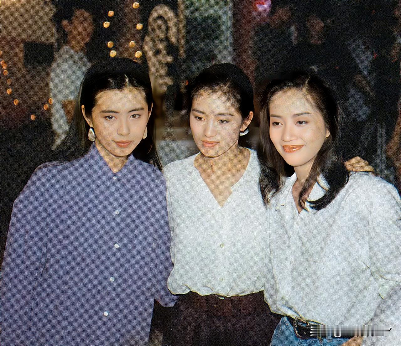 这是王祖贤和巩俐与梅艳芳在片场休息间隙的一张合影,拍摄于一九九一年的香港。彼时王祖贤二十四岁,巩俐二十六岁,梅艳芳二十八岁,三大女神同框,真是惊艳了时光。