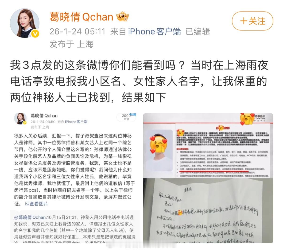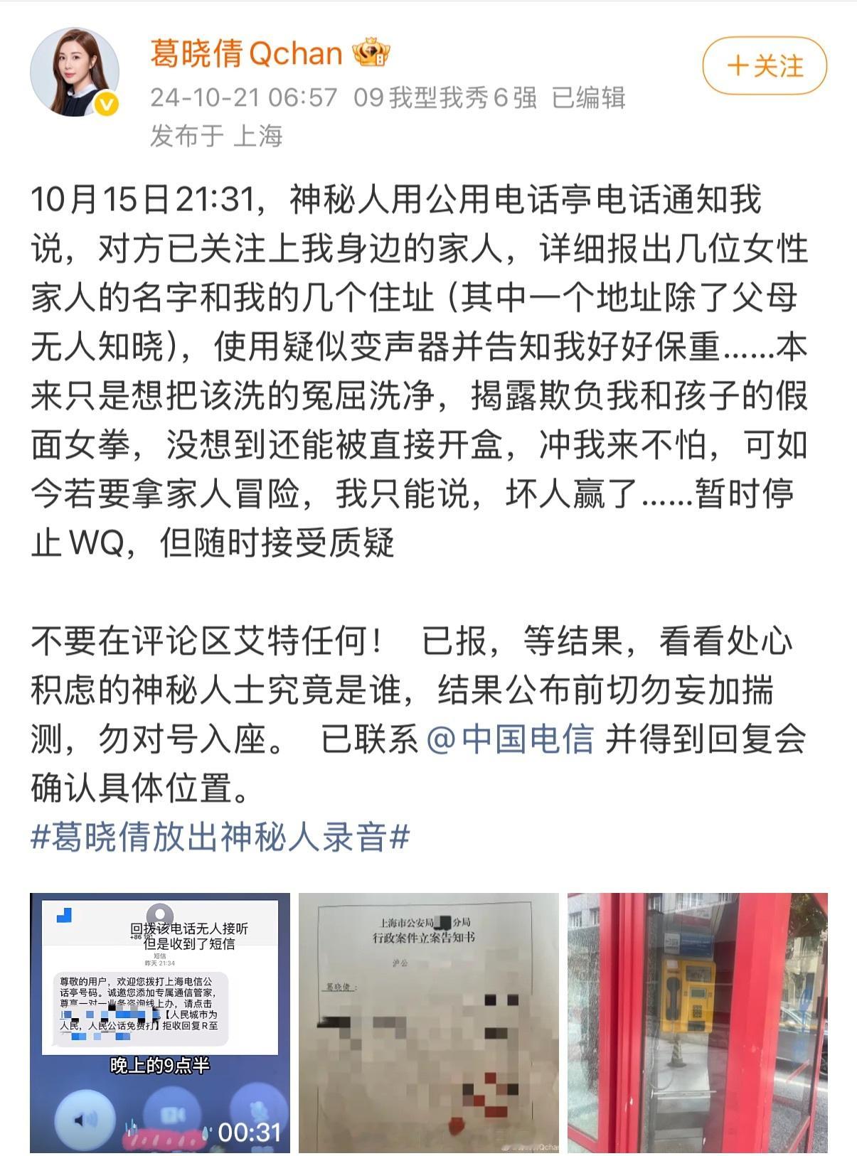 我去!好吓人,黑社会吗?张雨绮前夫袁巴元的第一任妻子葛晓倩发微博,去年10月,有人利用公共电话和变声期威胁她,要求她闭嘴,还报上了她家几位家人的姓名和住址。葛晓倩找到打匿名电话的人了,和张雨绮有千丝万缕的关系