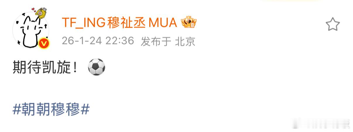 穆祉丞 期待凯旋穆祉丞应援国足u23 发文“期待凯旋!⚽️”,为今晚的U23亚洲杯终极之夜中国队应援