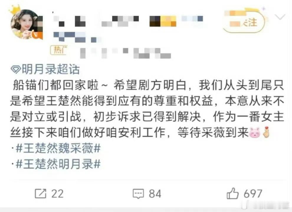 辛云来粉丝维权成功,明月录官博现在没有加超话了。不过以后到底使用哪个超话,可能还是得有一个王楚然粉丝和辛云来粉丝都满意的方案