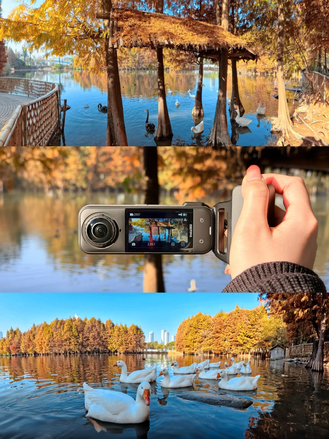 园博苑不止落羽杉,还有被低估的绿野仙踪!用影石X5搭配街拍手柄记录行程,广角镜头真的能让人发现平时忽略掉的美好细节