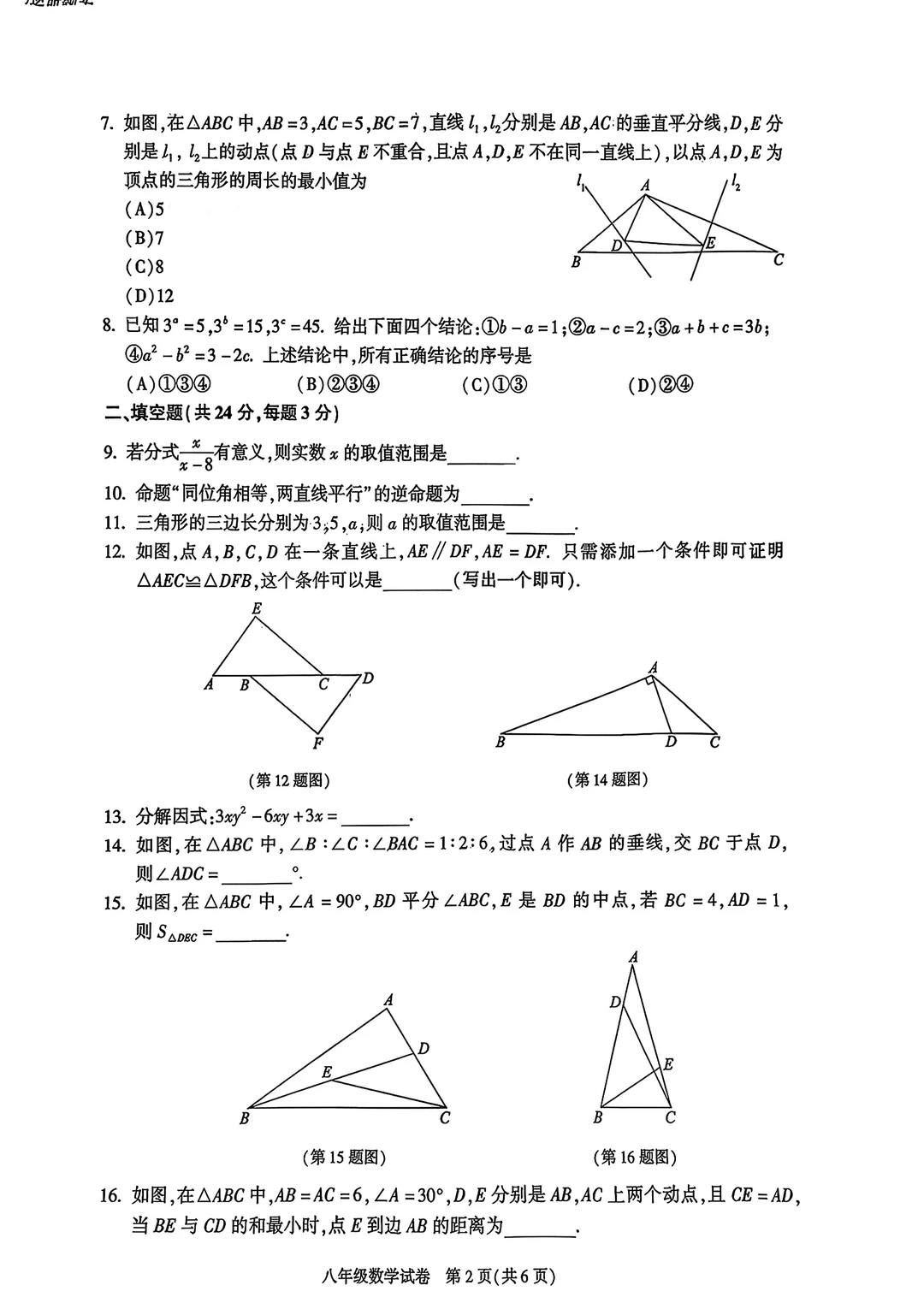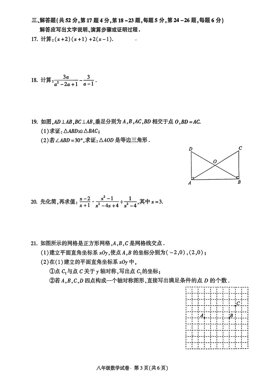 基础题占比高!重点考轴对称、整式分式运算、全等三角形~