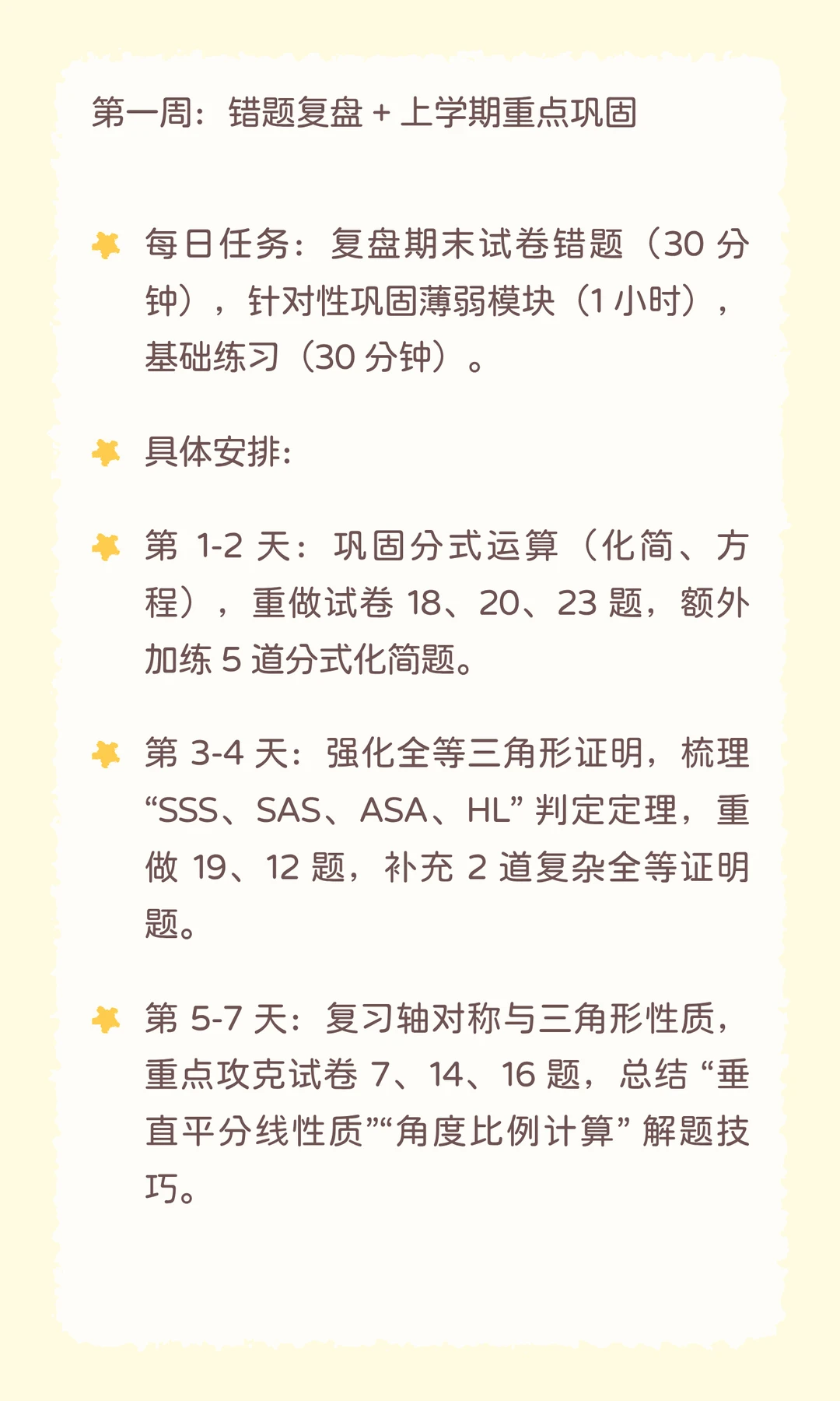 ❶ 第 1 周:错题复盘 + 分式 / 全等巩固