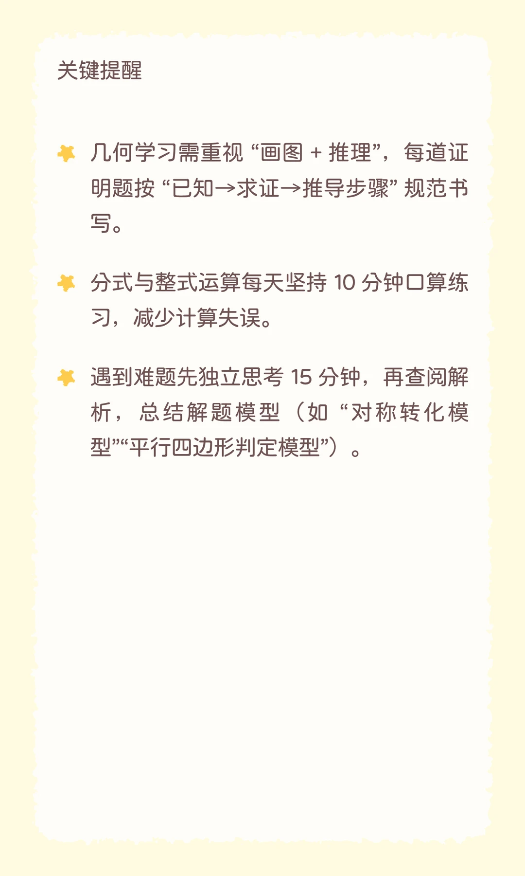 几何画图 + 计算口算每天 10 分钟,难题先想 15 分钟再看解析~