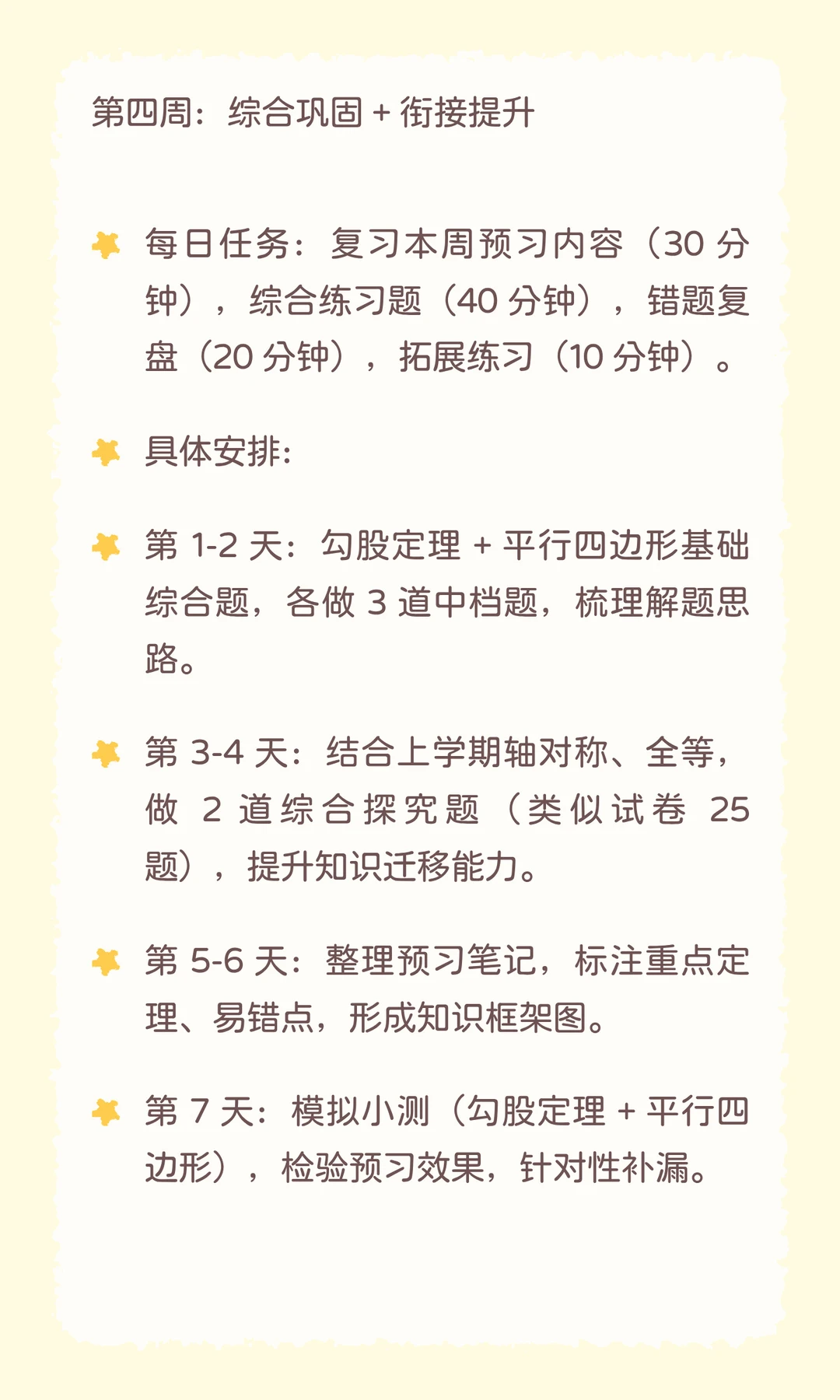 ❸ 第 3 周:平行四边形性质 + 判定定理