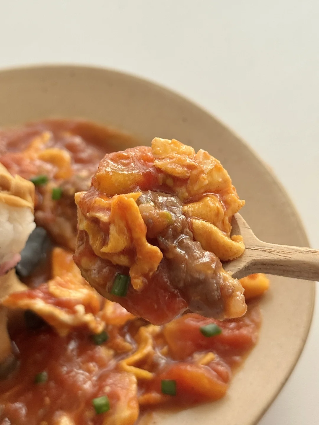 今天的番茄牛肉滑蛋饭真的好下饭😋